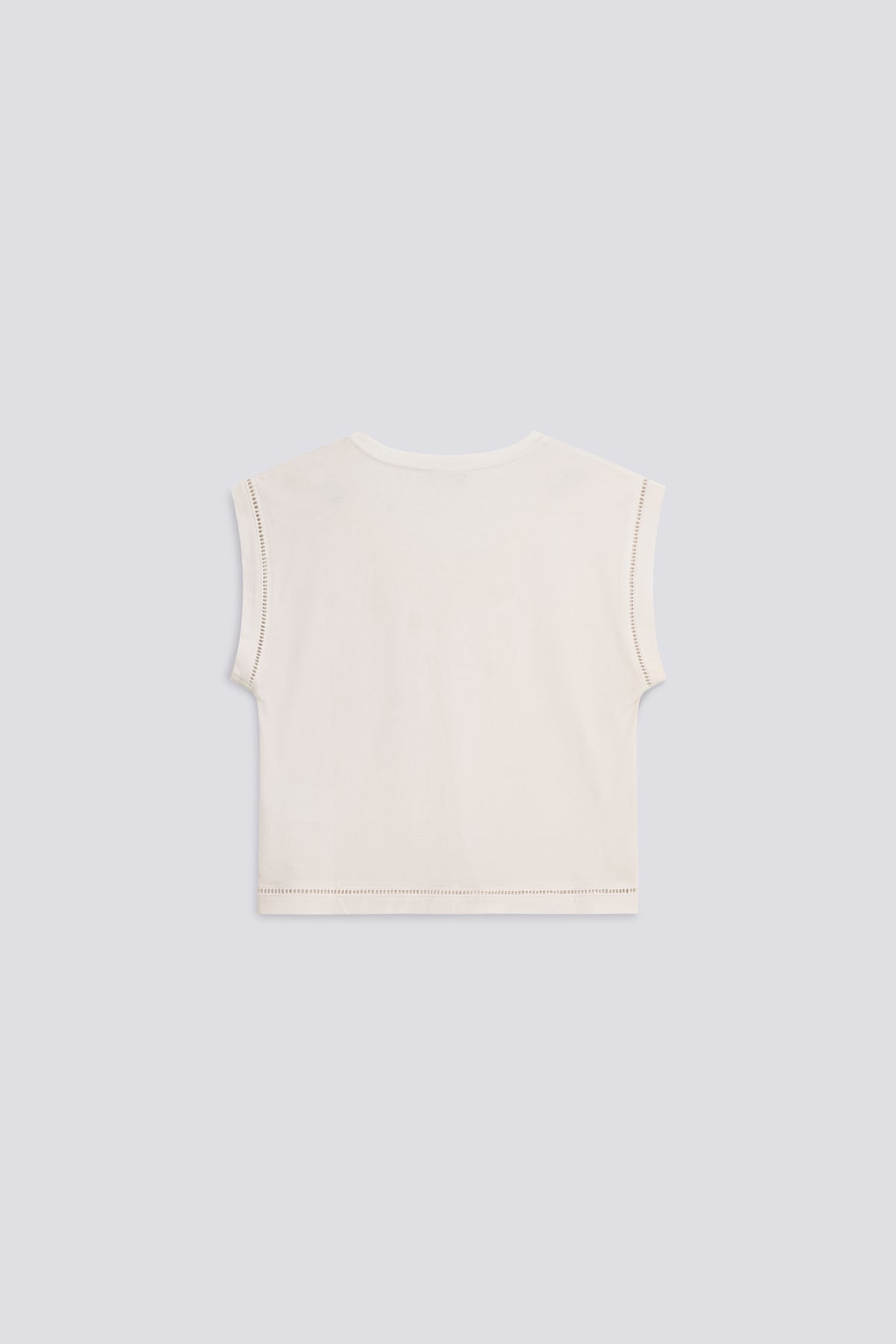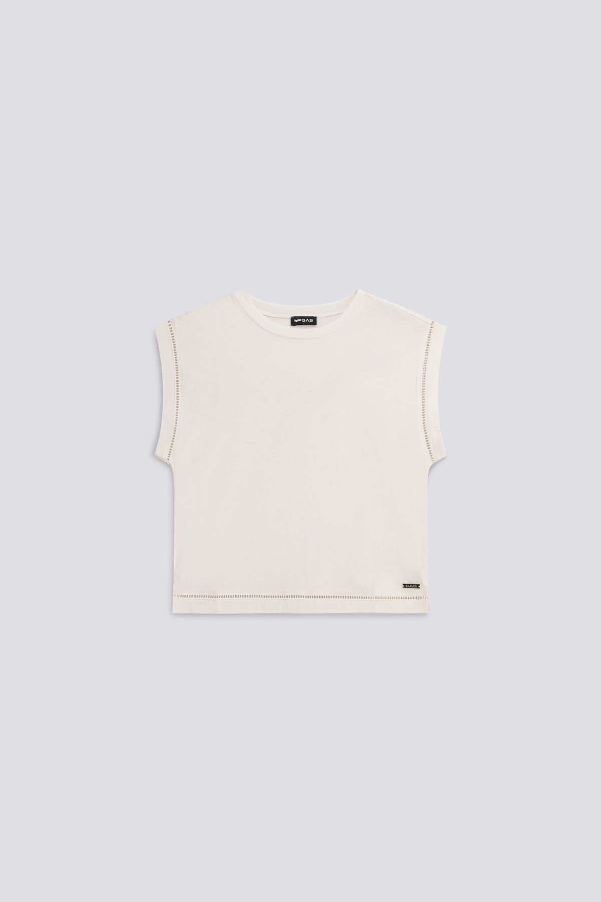 Kurzarm-T-Shirt aus Baumwoll-Jersey mit regulärer Passform. Das Ajour-Muster am Saum und an den Ärmeln sorgt für einen eleganten und femininen Akzent, während die Logo-Plakette aus Metall das Design abrundet. Ein klassisches Essential, modern interpretiert, verleiht Alltagslooks einen anspruchsvolleren Twist.