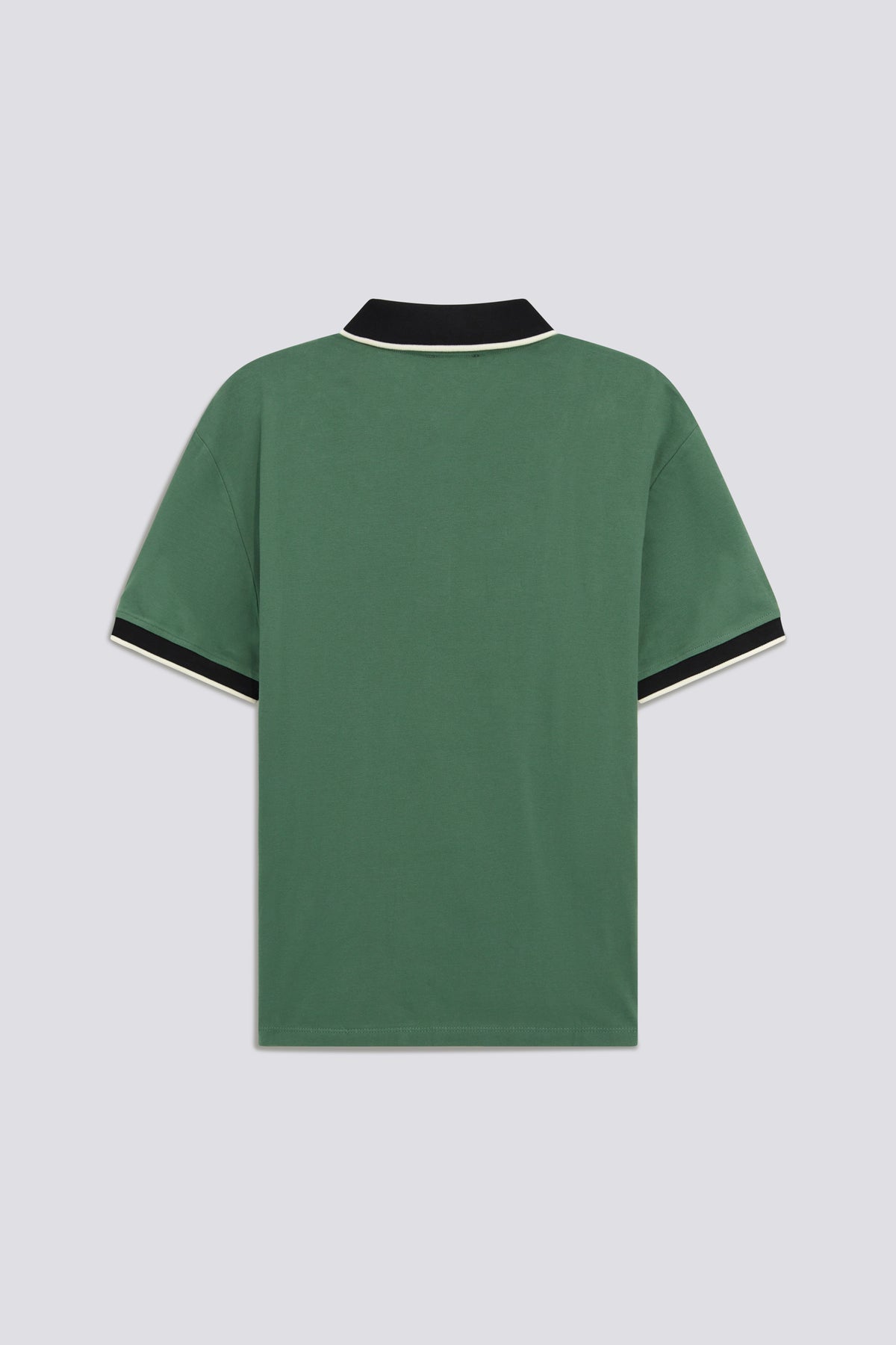 - Contrasting collar and hem