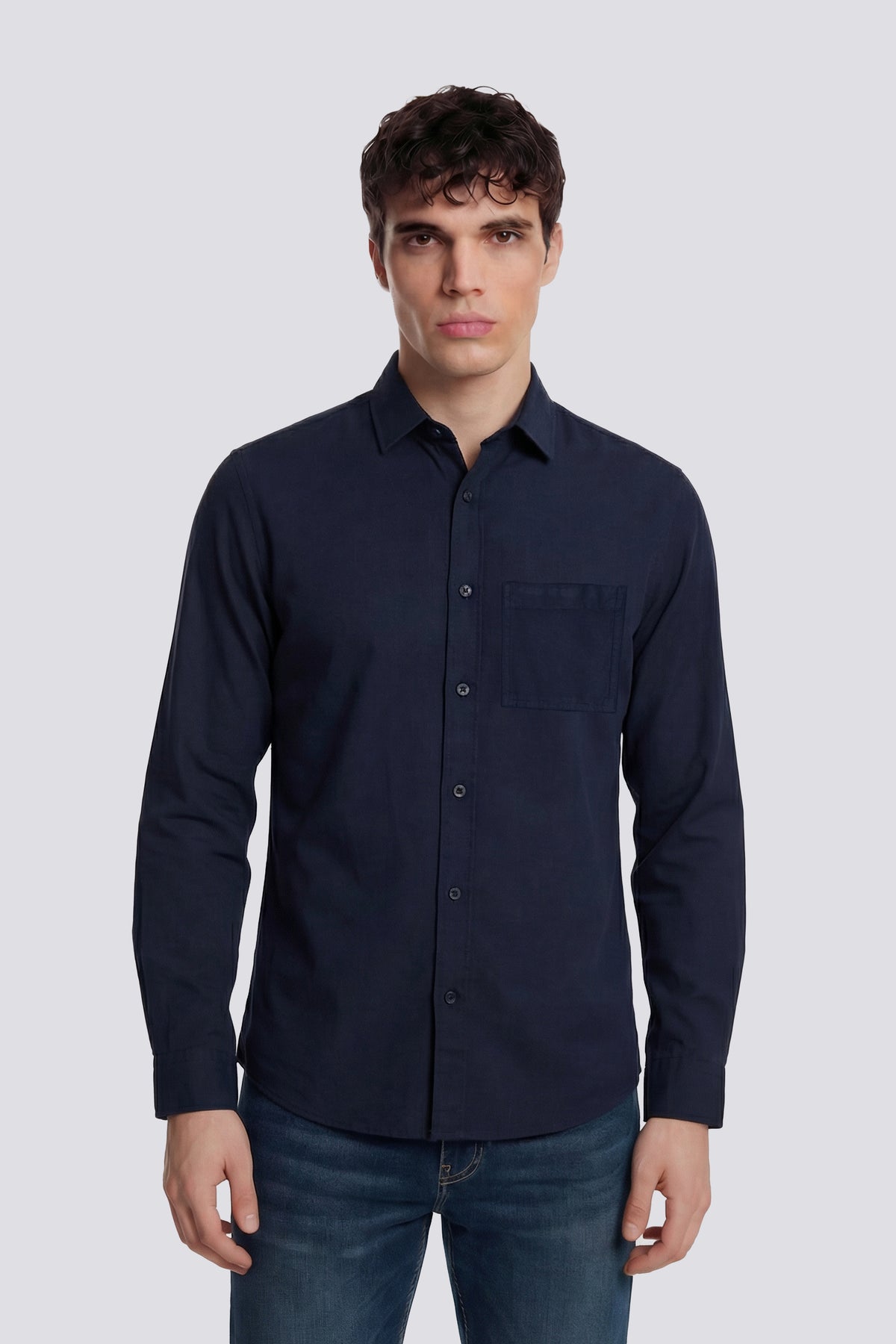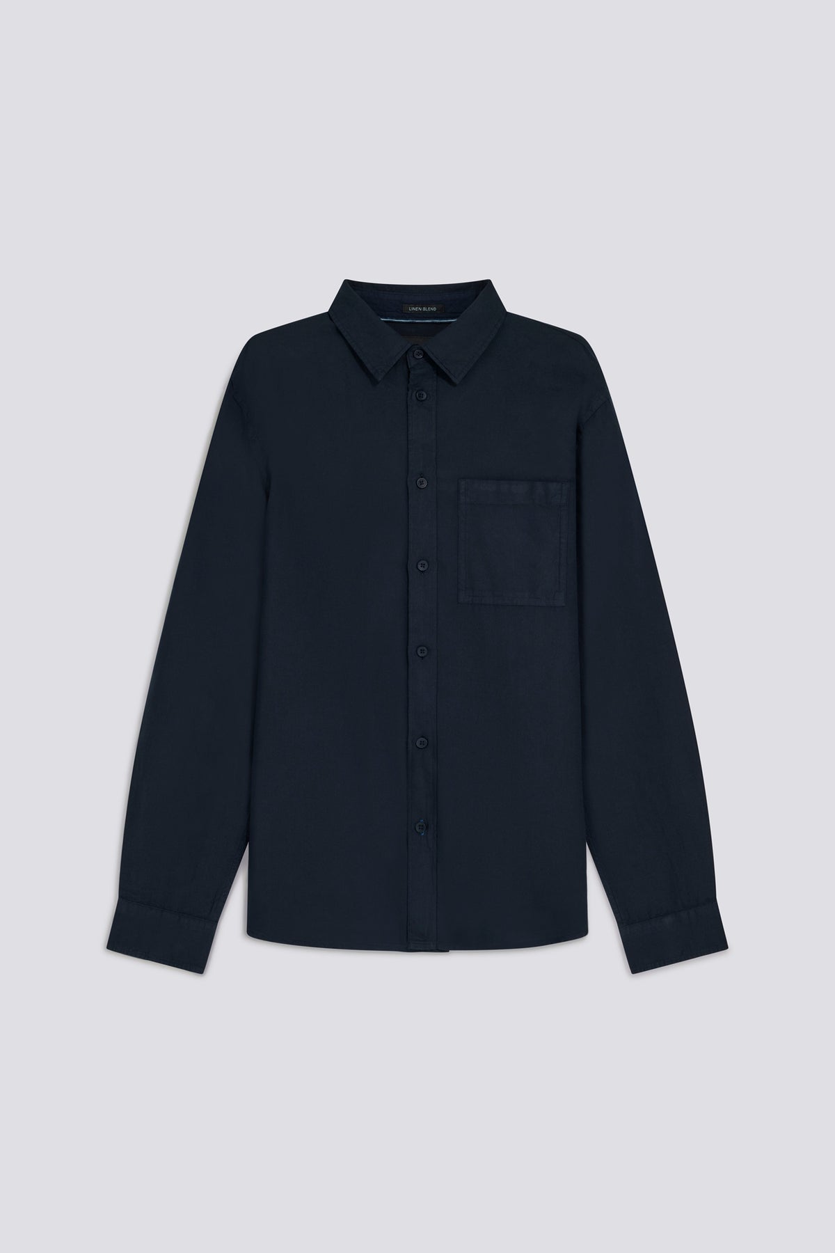Long sleeve regular fit shirt in garment-dyed cotton linen. The model features a clean construction enhanced with refined details such as embroidered logo, chambray on the inner collar band, and striped tape inside the collar and as a loop on the back yoke. A lightweight and versatile piece designed for an effortless yet polished summer look. Main Features: