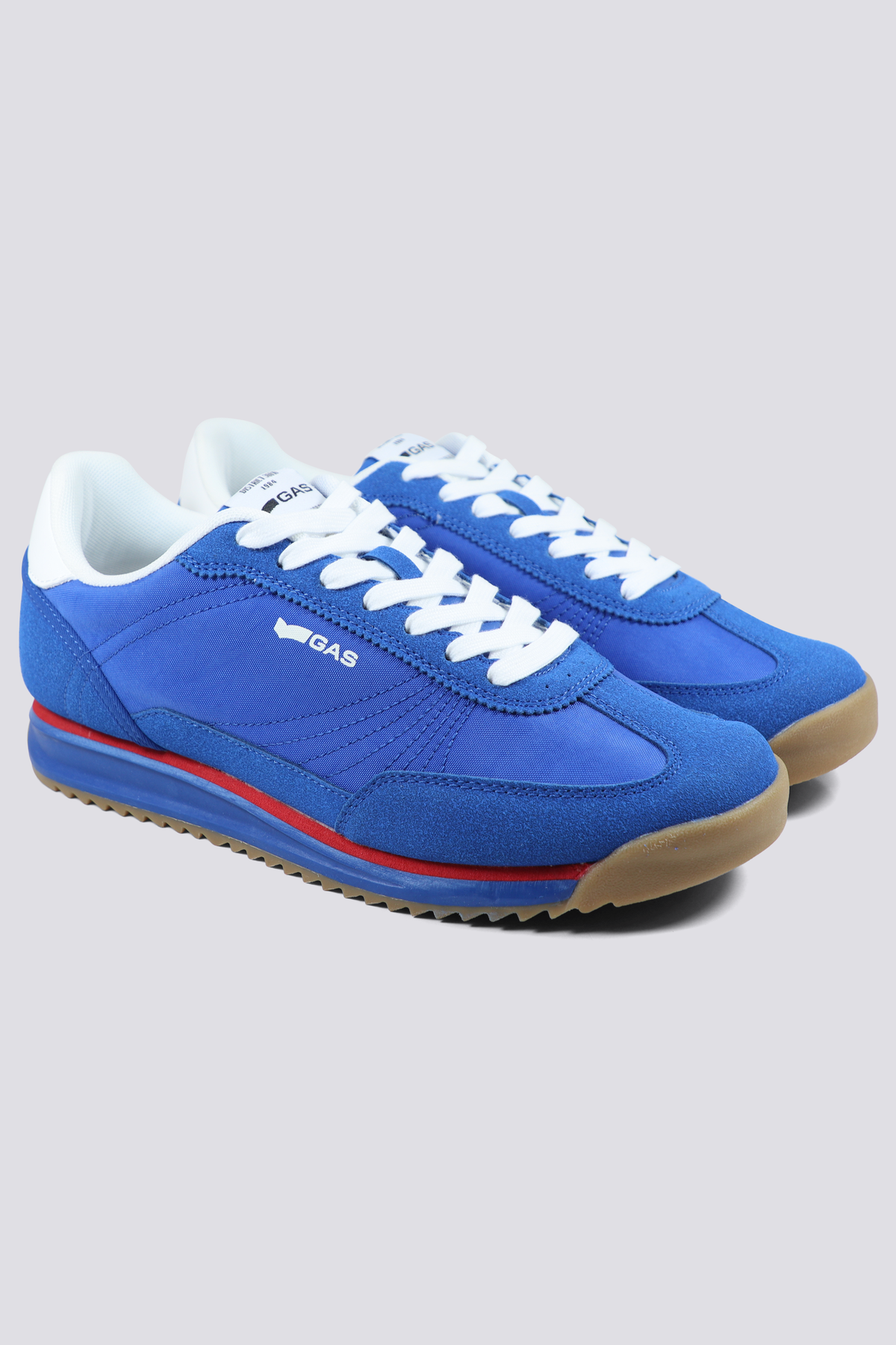 Men’s sneakers with a sporty, dynamic character. The blue upper is constructed with inserts that define the structure of the shoe, while the sole introduces a graphic accent with a red line running along the profile. A model with a retro-sport look, designed to be the standout piece of your summer outfits.