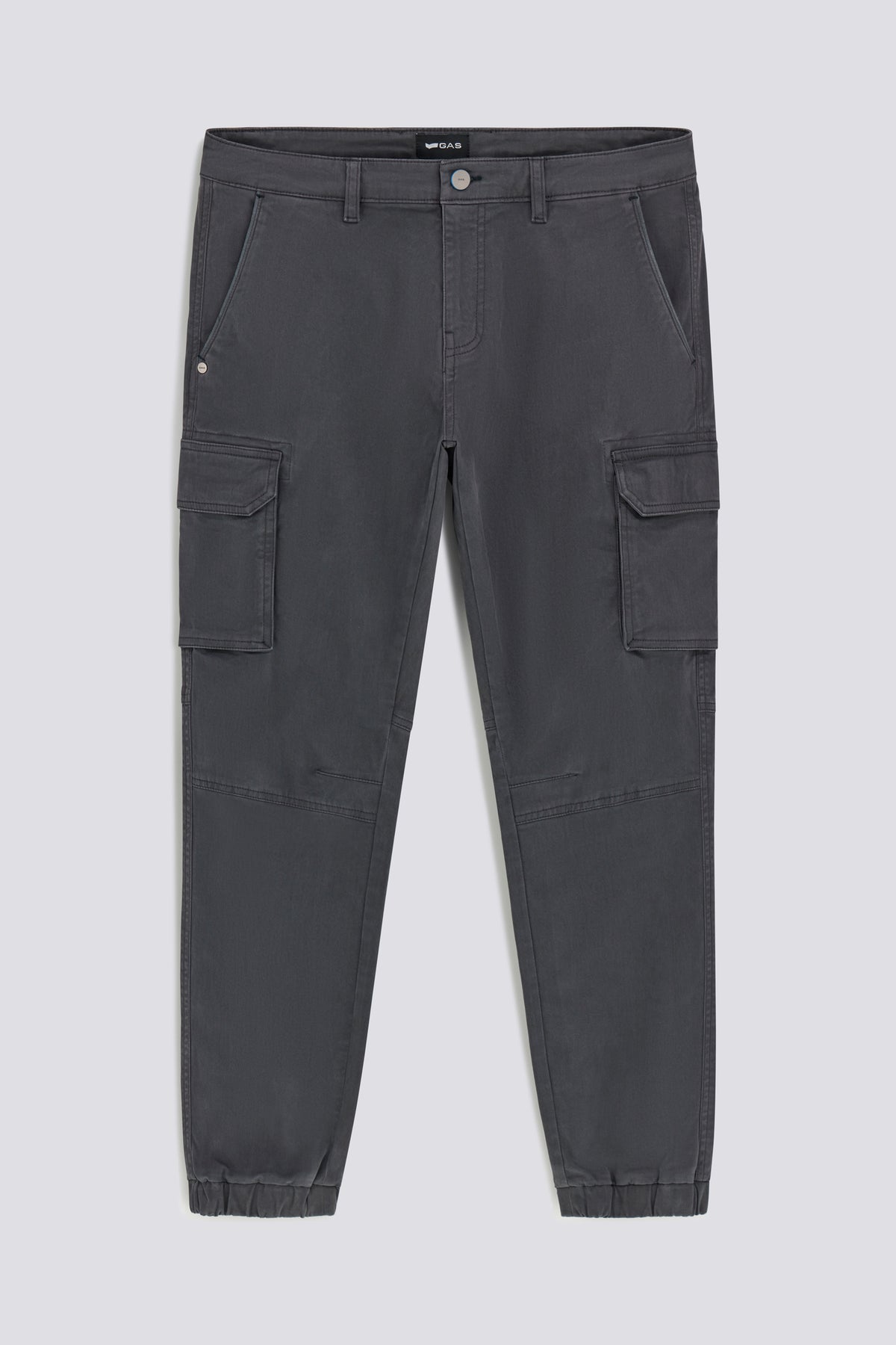 Cargo slim fit with a sharp cut and urban style. The side cargo pockets and the welt pockets on the back combine functionality and character, while the elastic at the bottom adds a street touch.