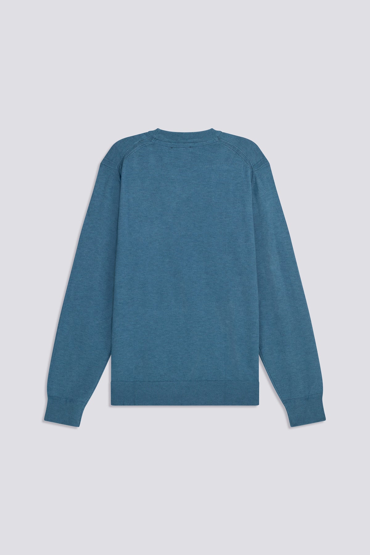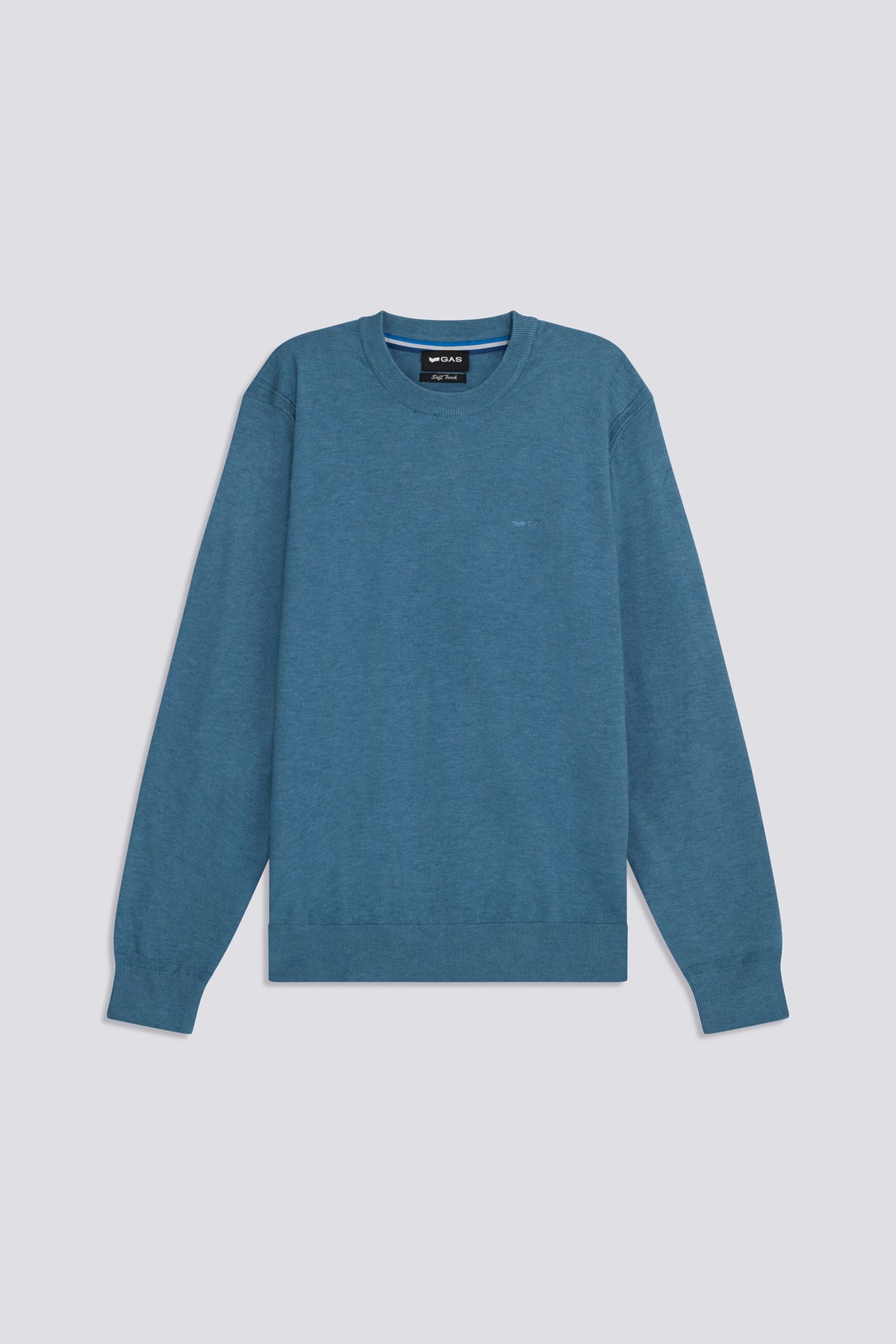 Slim fit crew neck sweater in fine yarn 12, soft and light to the touch. The striped trim on the back of the neck and the tonal logo embroidery on the chest complete the look. An essential with a clean character, perfect under a blazer or on its own with denim or chinos.