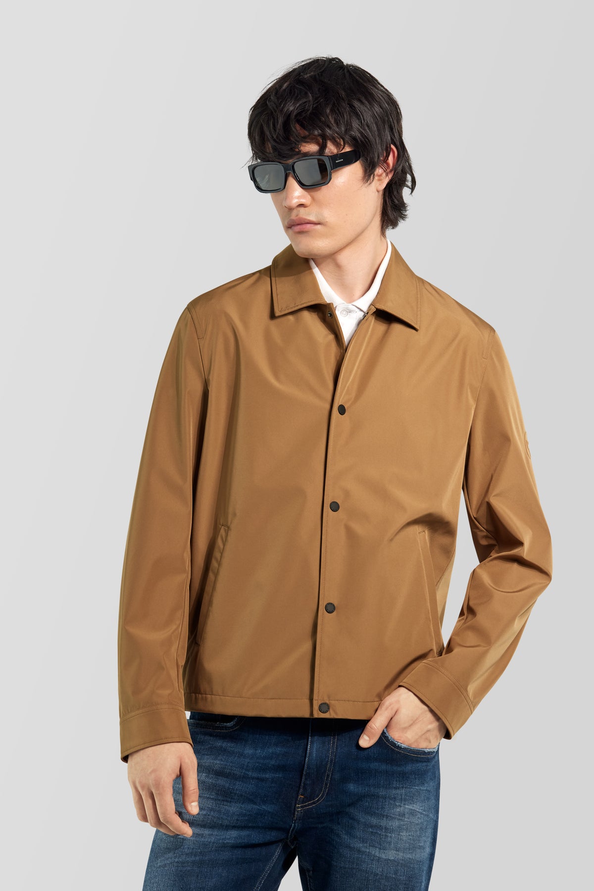 Men's regular fit jacket in technical fabric paired with jersey. An essential aesthetic meets technical construction, designed for everyday use. The embossed logo on the left sleeve marks the garment, while the jersey bonding adds comfort and structure to a jacket with a contemporary and functional character.