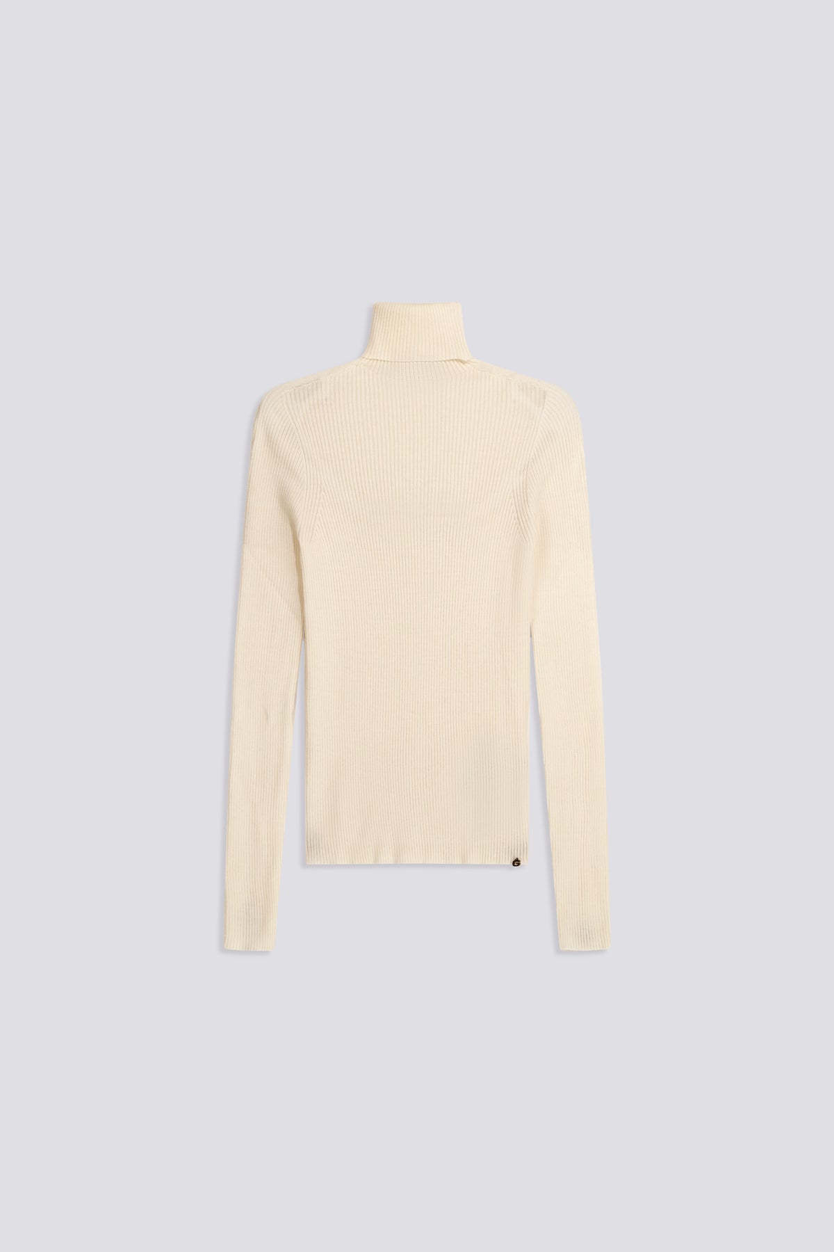 Ribbed slim fit turtleneck sweater, crafted with seamless technology for a stitch-free comfort and a perfectly defined silhouette. The fine 14 gauge viscose blend yarn makes it soft and lightweight, perfect on its own or under a blazer. Iconic details like the metal plaque on the back and the 'G' pendant on the side add a distinctive touch. Essential and versatile: pair with midi skirts or high-waisted denim for a cool and feminine look.