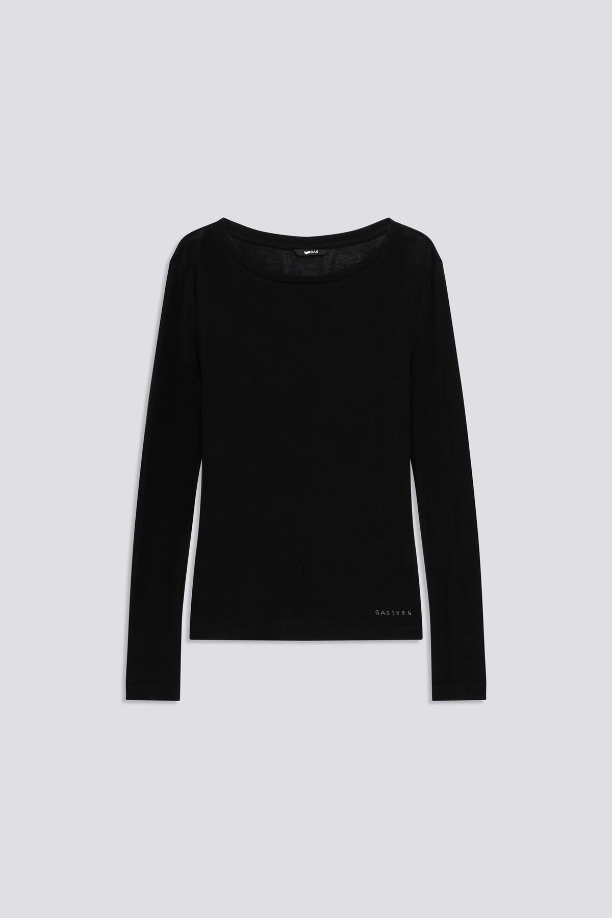 This long-sleeved t-shirt, made from soft viscose and wool jersey, wraps the body with lightness and warmth. Completing the garment is the rhinestone logo detail applied on the lower left front. Ideal to wear on its own or as a base for layered outfits, perfectly balancing comfort and style.
