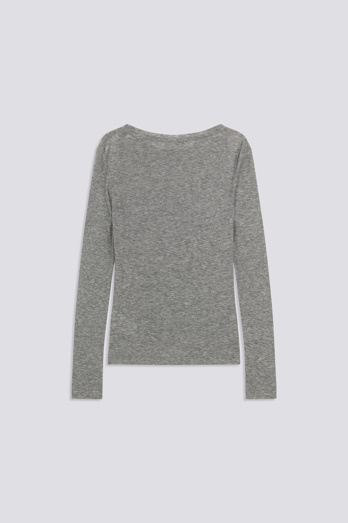 This long-sleeve t-shirt, made from soft viscose and wool jersey, wraps the body with lightness and warmth. Completing the garment is the rhinestone logo detail applied to the lower left front. Ideal for wearing alone or as a base for layered outfits, perfectly balancing comfort and style.