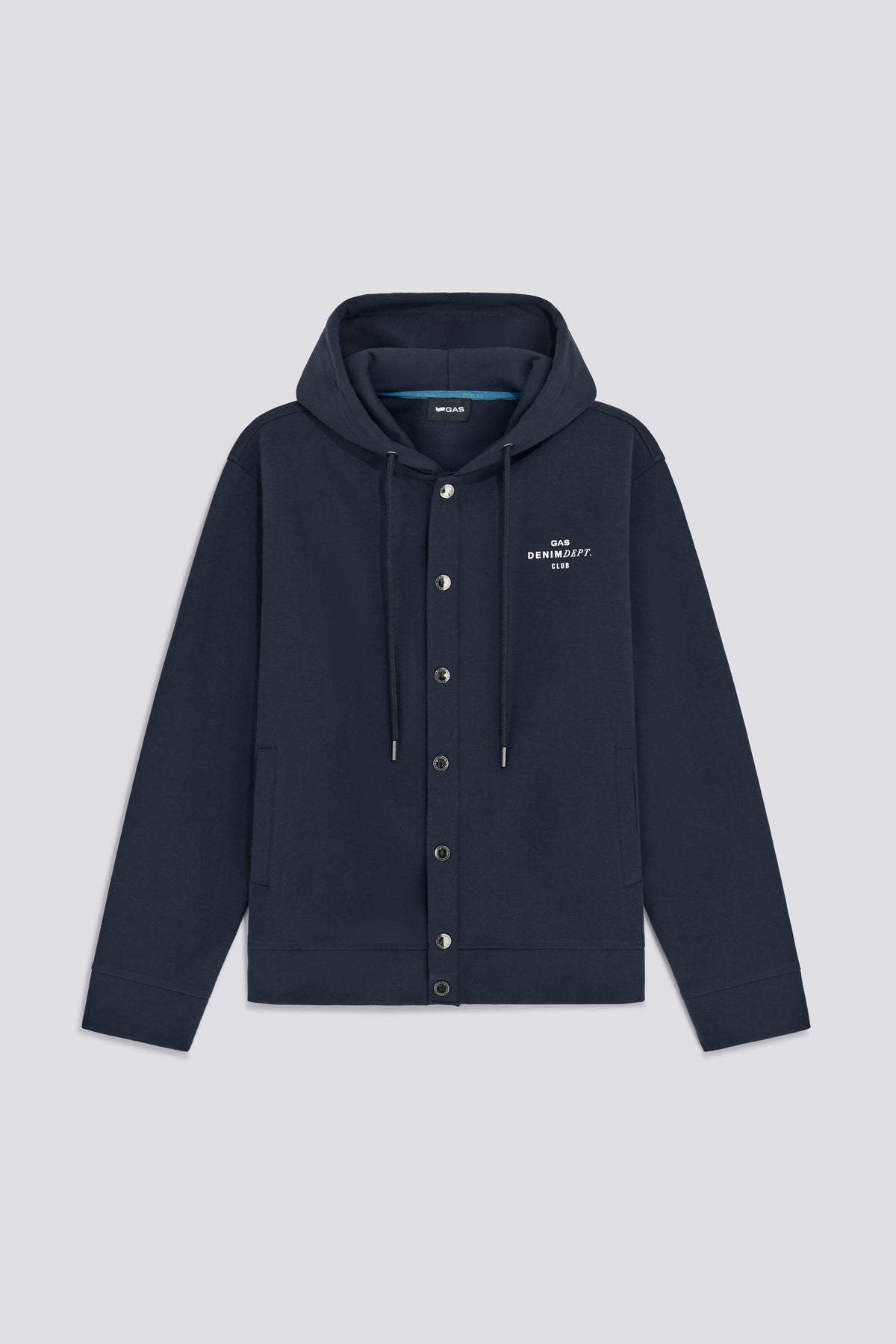 Men's comfort fit hoodie with buttons, made from a cotton blend interlock. The bold contrast logo on the chest adds a striking graphic twist, while the branded sweatband refines the interior with a distinctive touch. A versatile garment, perfect for completing urban looks or adding comfort to more relaxed ones.