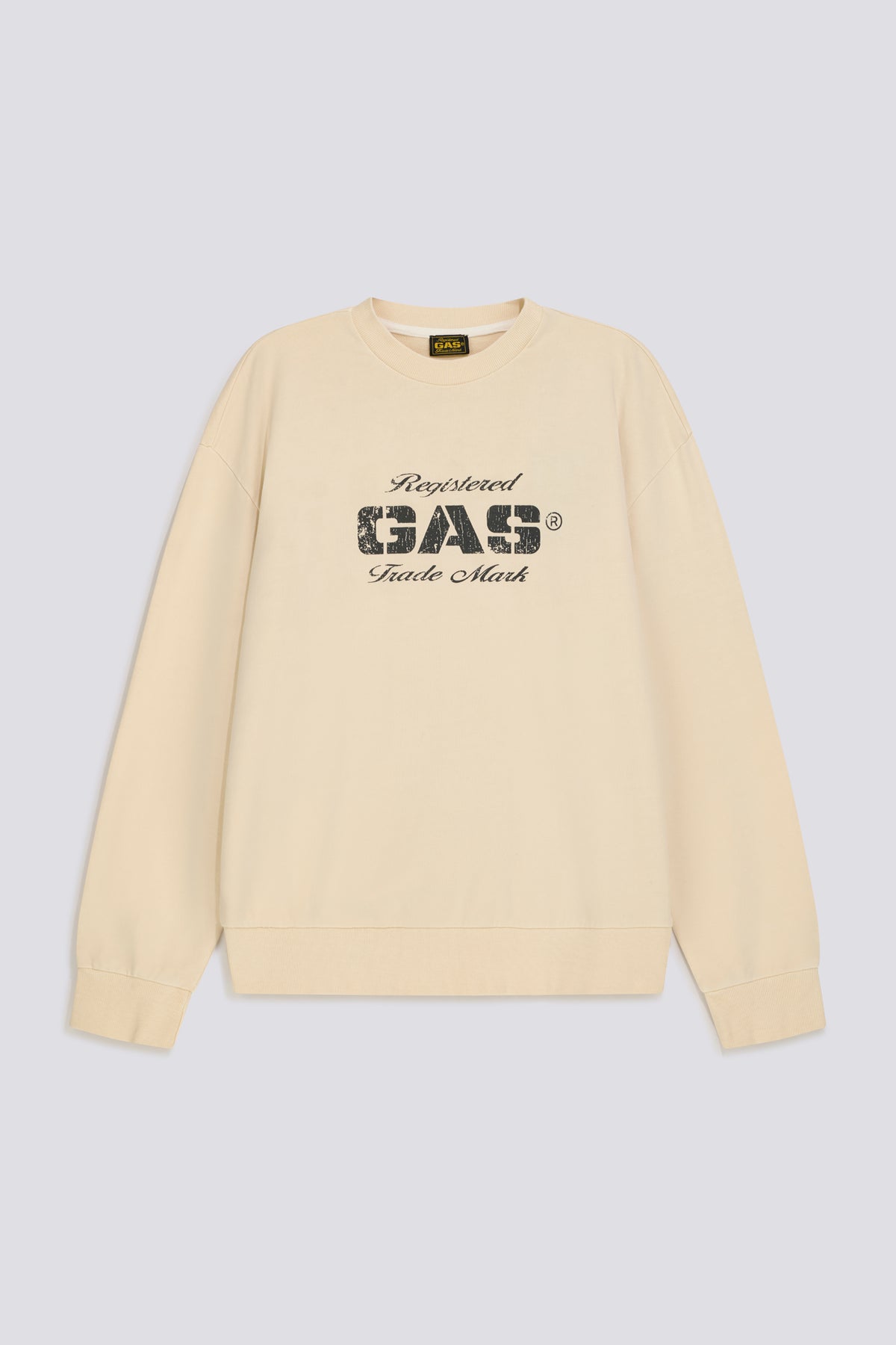 Men’s crewneck sweatshirt with a regular fit, made from 100% cotton diagonal fleece. The garment-dyed process gives the color a lived-in effect, enhancing the authentic character of the piece. Centered on the chest, the heritage logo print references the GAS archive and serves as a distinctive graphic element.