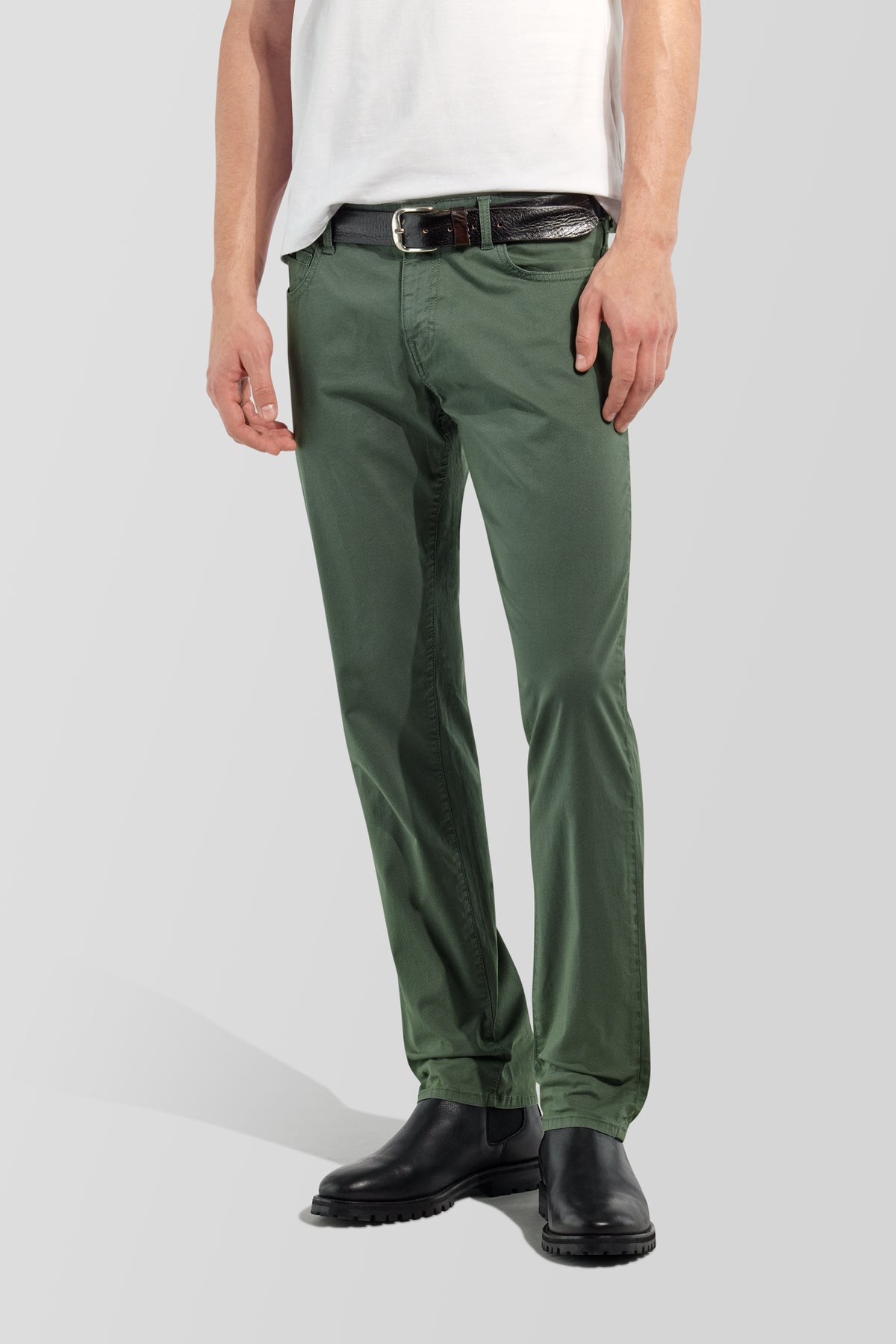 Men's slim fit 5-pocket pants in stretch gabardine with garment-dyed micro print. Offered in a range of shades, the Albert model features a clean, modern look. The stretch fabric moves naturally with the leg, enhancing the slim fit and making it suitable for everyday, versatile, and contemporary wear.