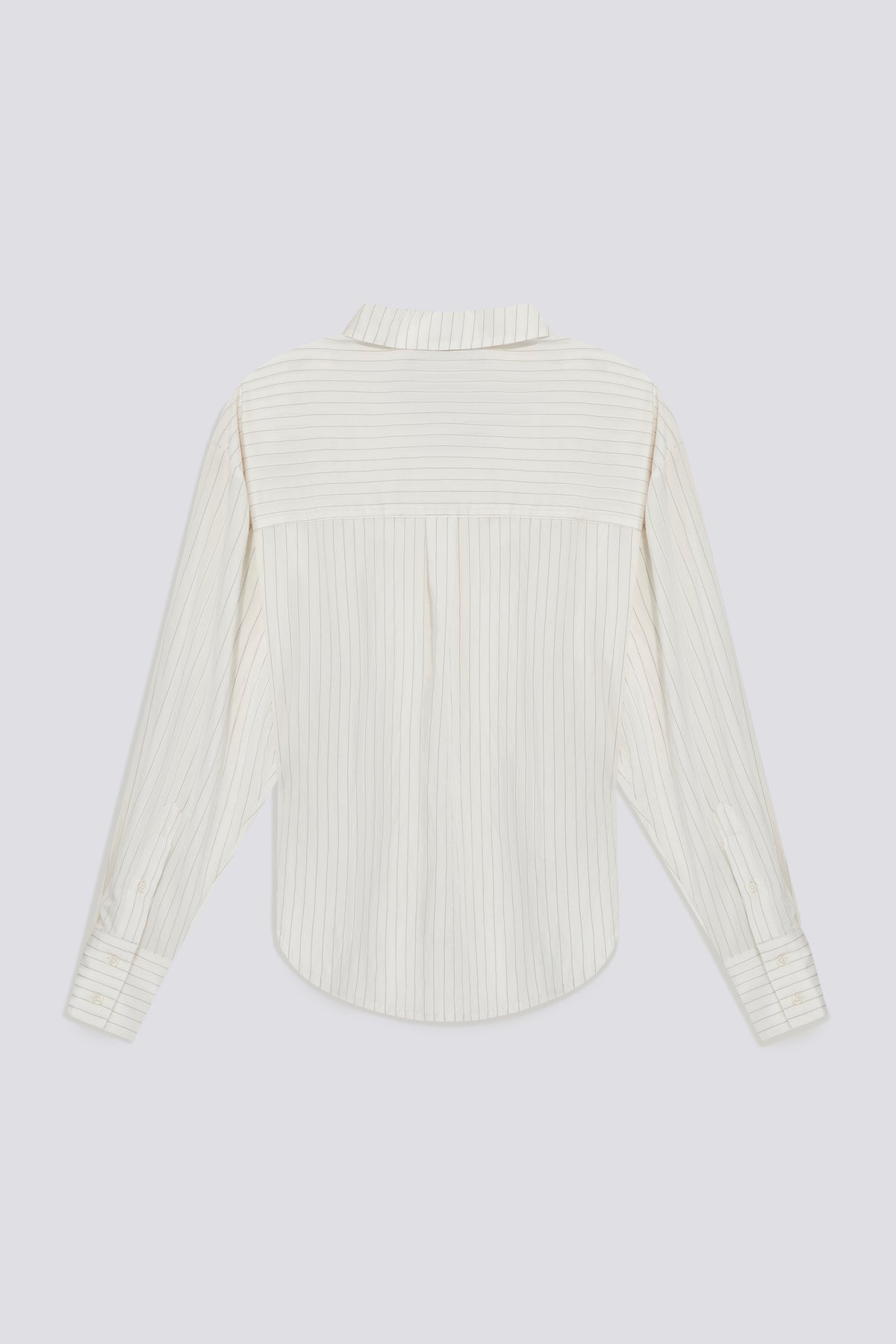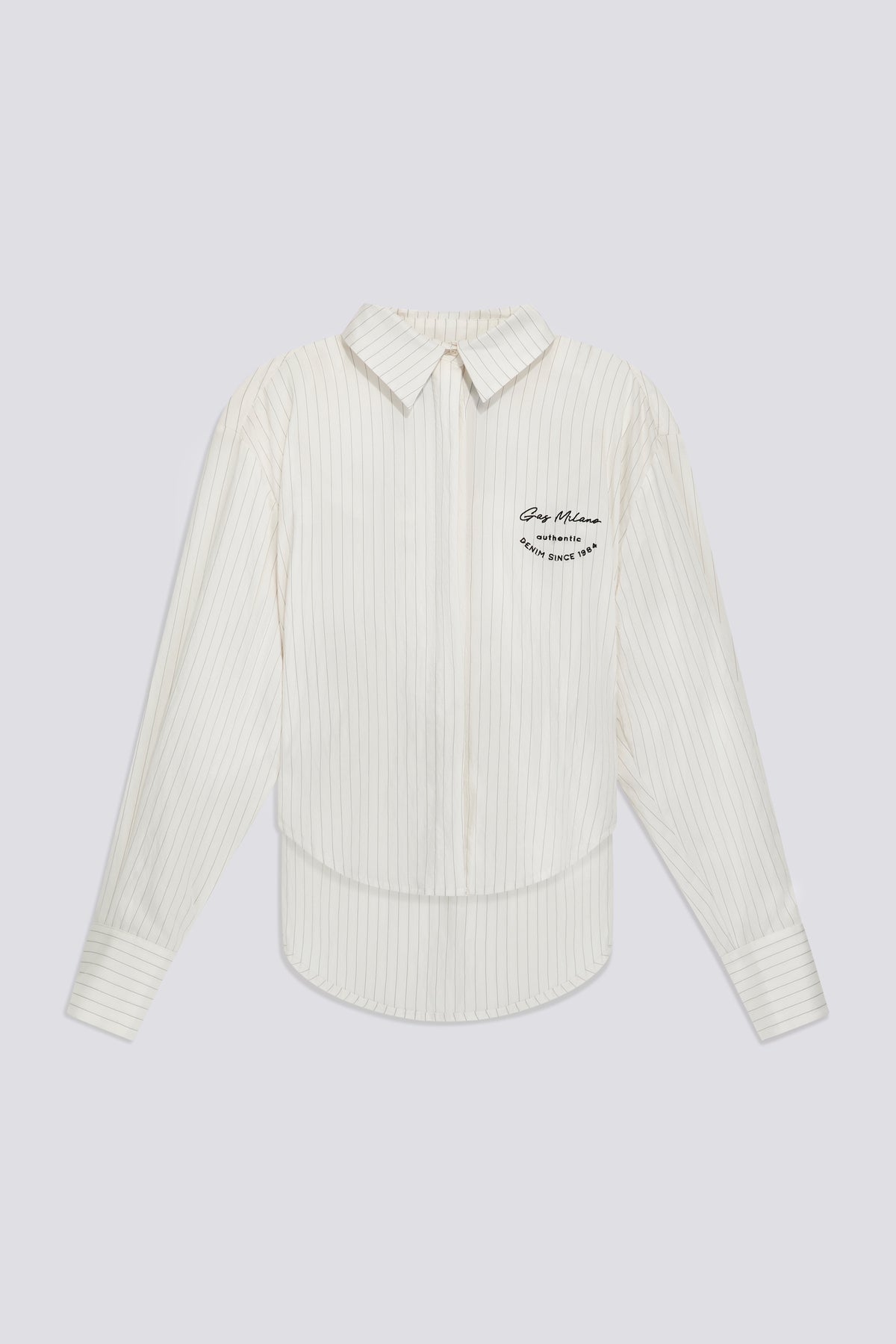 Women's comfort fit striped viscose shirt dyed in yarn. The cropped cut and vertical stripes strike a balance between lightness and character. The Cornely embroidery on the chest and the metal logo plaque on the left sleeve add a graphic and distinctive accent, elevating everyday looks.