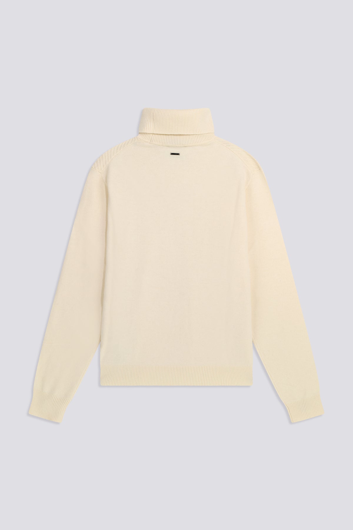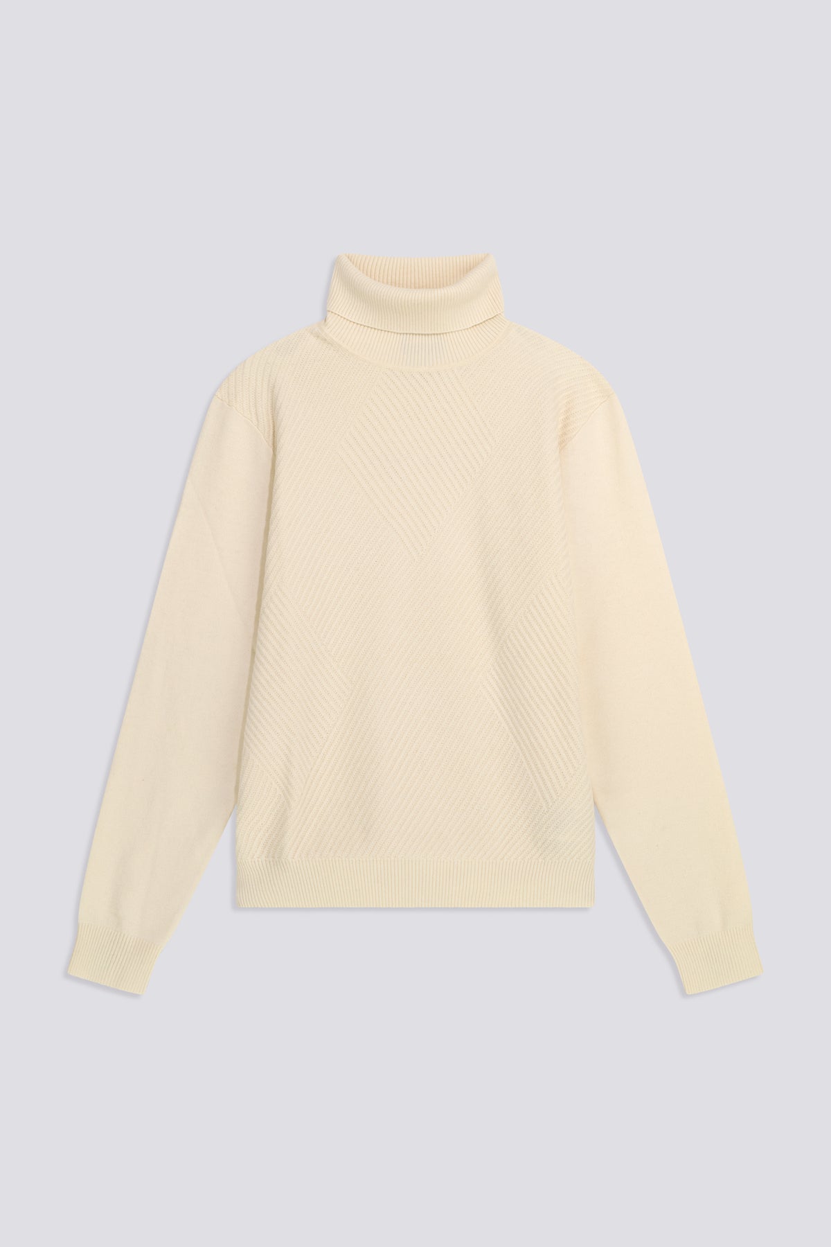 Turtleneck sweater with a regular fit made from fine 12-gauge cotton-wool yarn, featuring a raised geometric texture on the front that adds character and structure. A versatile and sophisticated piece, finished with a metal logo plate on the back neckline. Perfect to wear with denim or chinos for a clean yet distinctive look.