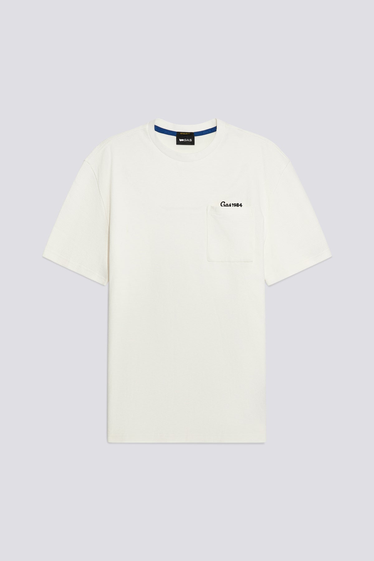 Men's short-sleeve regular fit T-shirt, crafted from stretch cotton waffle jersey with a structured and comfortable texture. The chest patch pocket features a logo embroidery, while the branded sweatband adds a twist to the design.