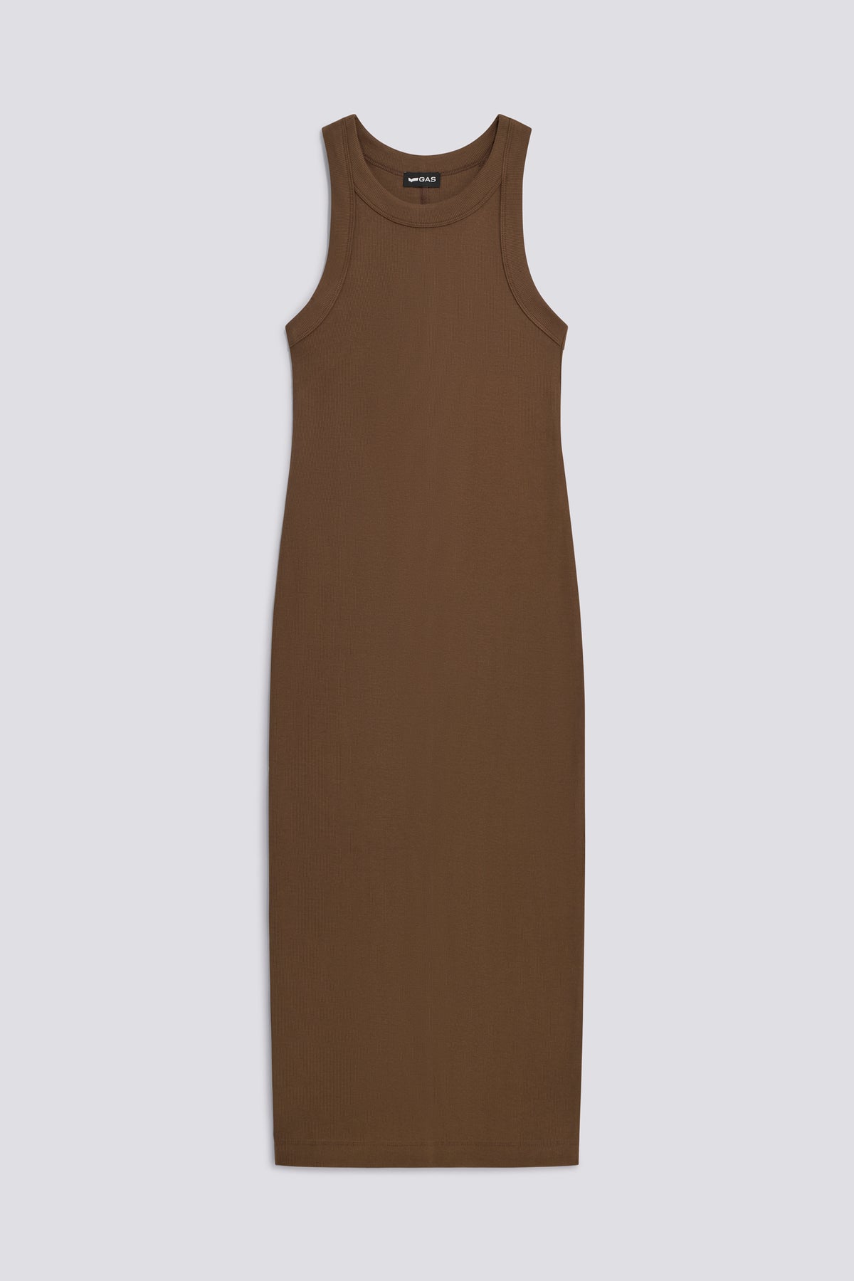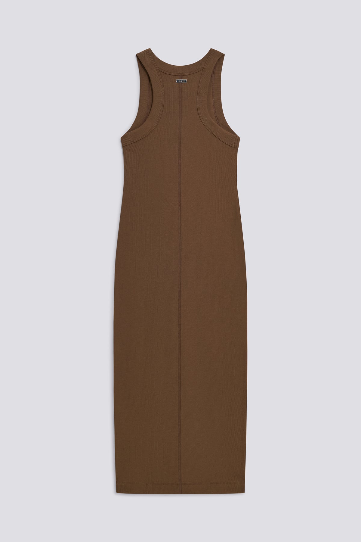 Slim-fit long tank dress in stretch ribbed fabric, designed for a close, feminine look. The clean design naturally enhances the silhouette and moves fluidly. The logo plaque on the back marks the piece, making it a versatile style, suitable from day to night.