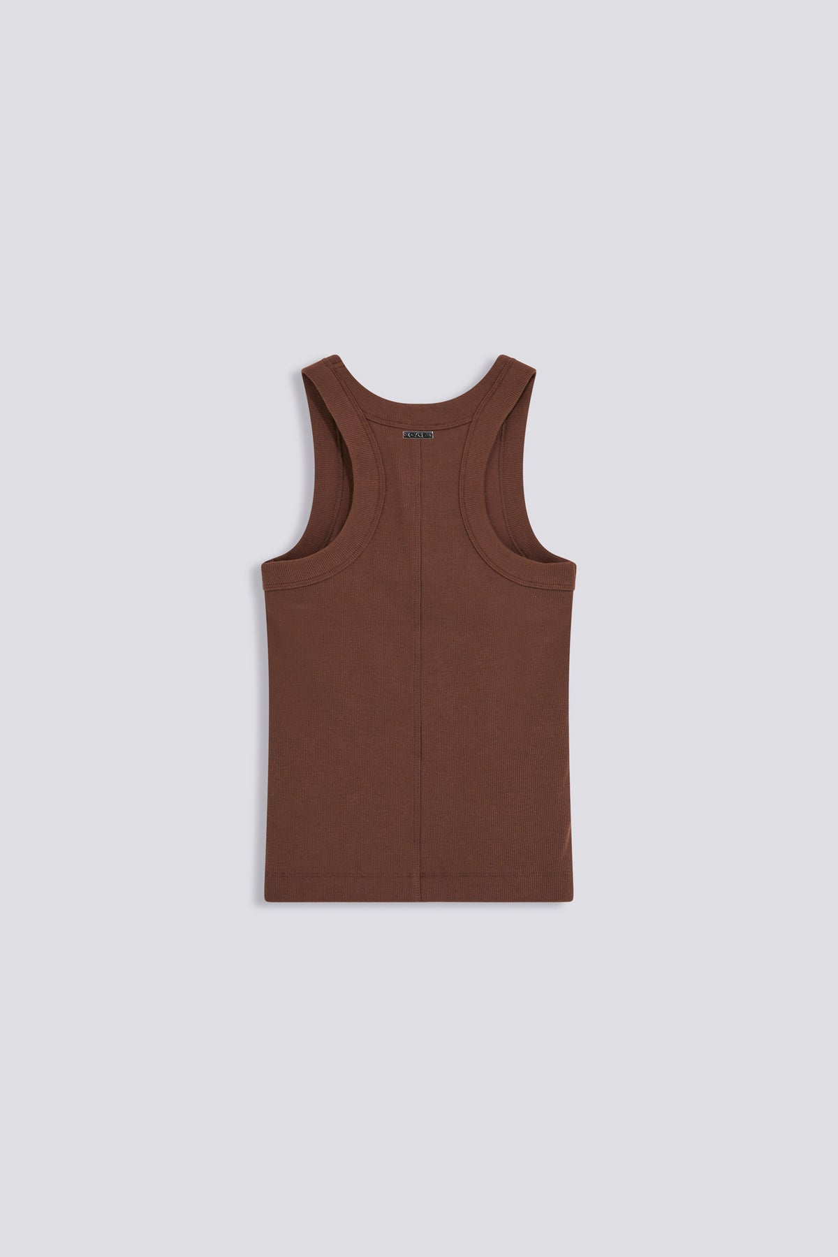 Slim fit women’s tank top made from stretch ribbed cotton. The ribbed fabric highlights the garment’s structure and gives a sleek look. The design is finished with a rainbow metal logo applied to the lower left front and a metal logo plaque on the back neckline. A versatile top, ideal to wear on its own or as a base layer under shirts and lightweight jackets.