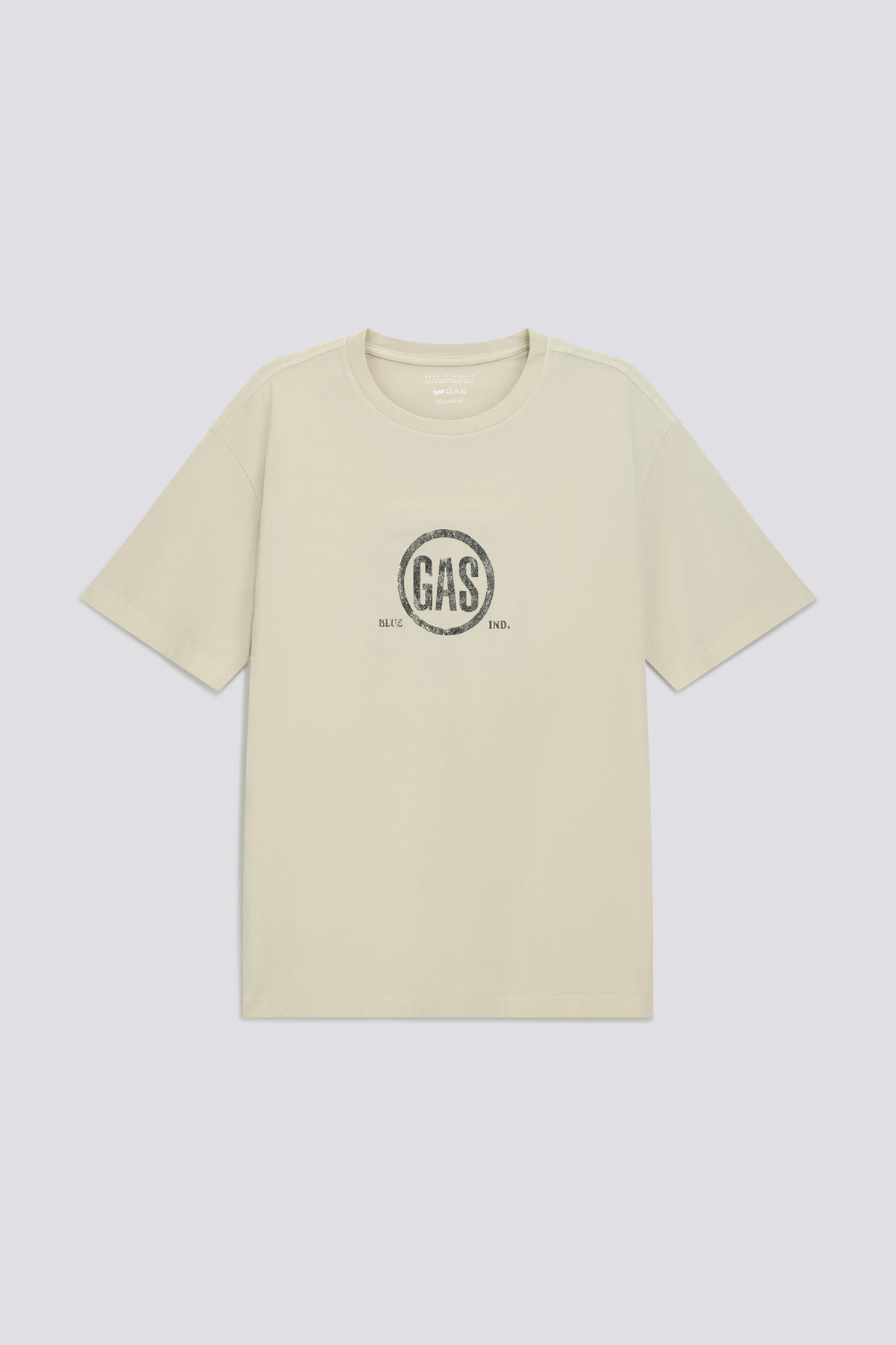 Men's regular fit short-sleeve t-shirt made from stretch cotton jersey. The vintage-look wash gives a worn-in appearance, while the water-based print on the front recalls GAS's heritage aesthetic. An easy yet distinctive piece, designed to complement denim in everyday outfits.