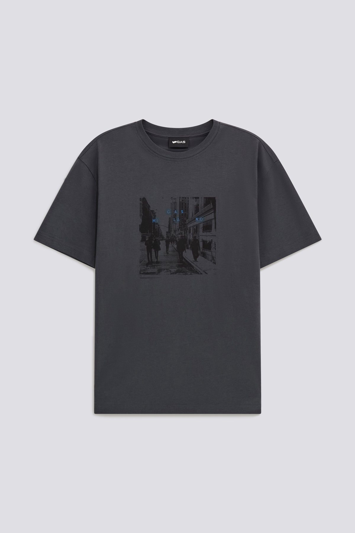 Camiseta de manga corta, ajuste regular, en jersey 100% algodón. La impresión gráfica en el frente añade un toque gráfico audaz, perfecto para elevar incluso los looks más esenciales.