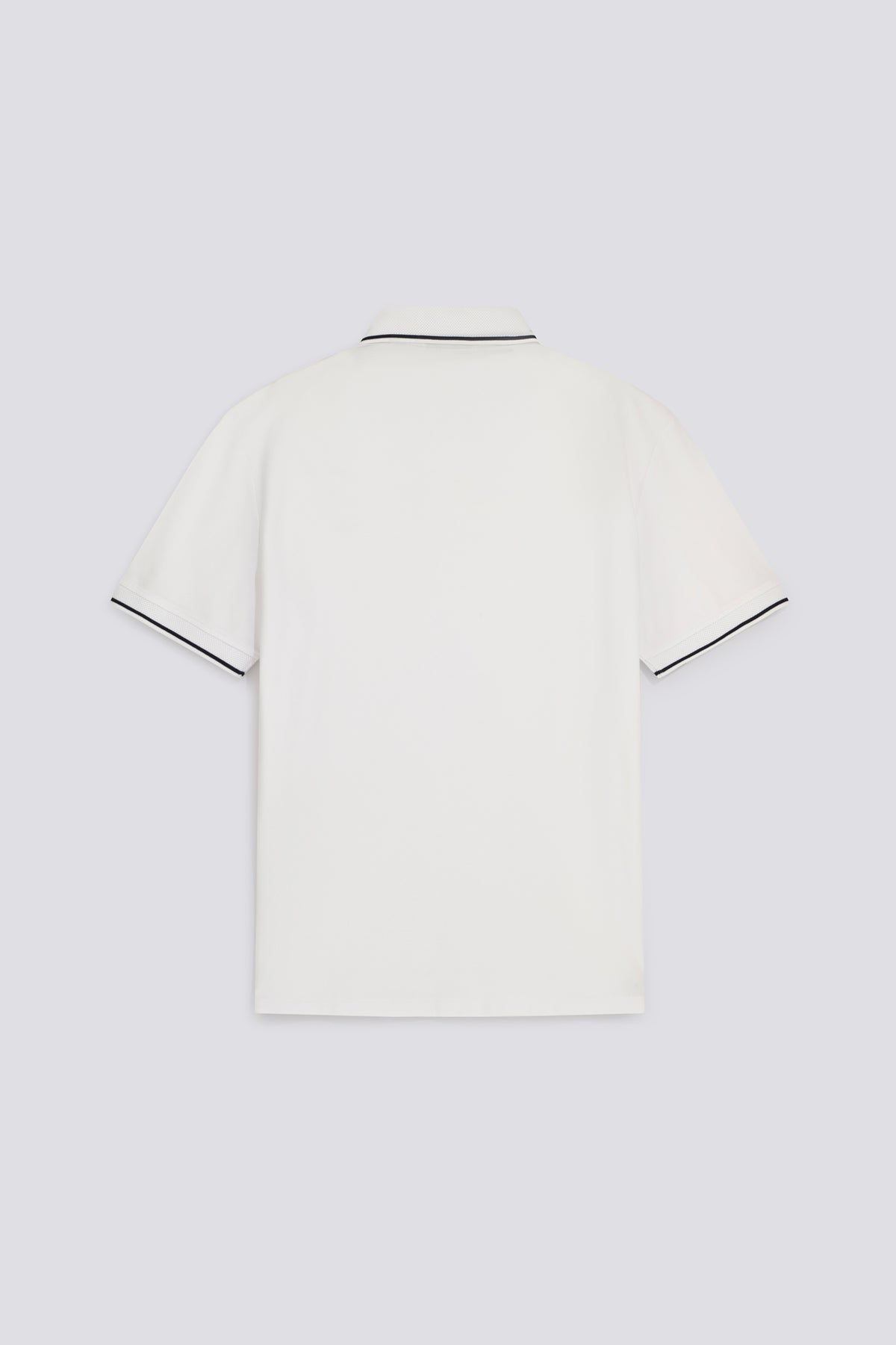 Polo homme coupe slim en piqué stretch. Col et bords de manches avec rayures contrastantes pour une touche sporty, tandis que l’impression du logo embossé sur la poitrine ajoute du relief et de la texture.