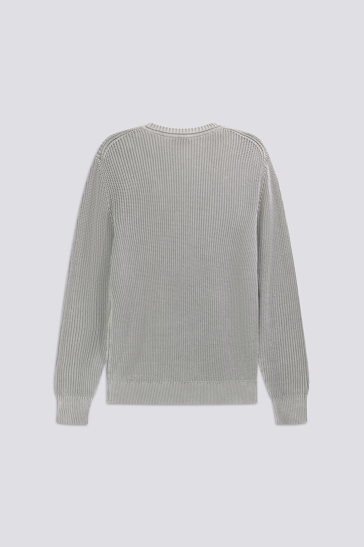 Pull homme col rond coupe regular en coton jauge 7, caractérisé par une maille compacte et une teinture en pièce qui apporte de la profondeur à la couleur. Les détails de construction au niveau du col et le patch logo définissent un design essentiel au caractère authentique.