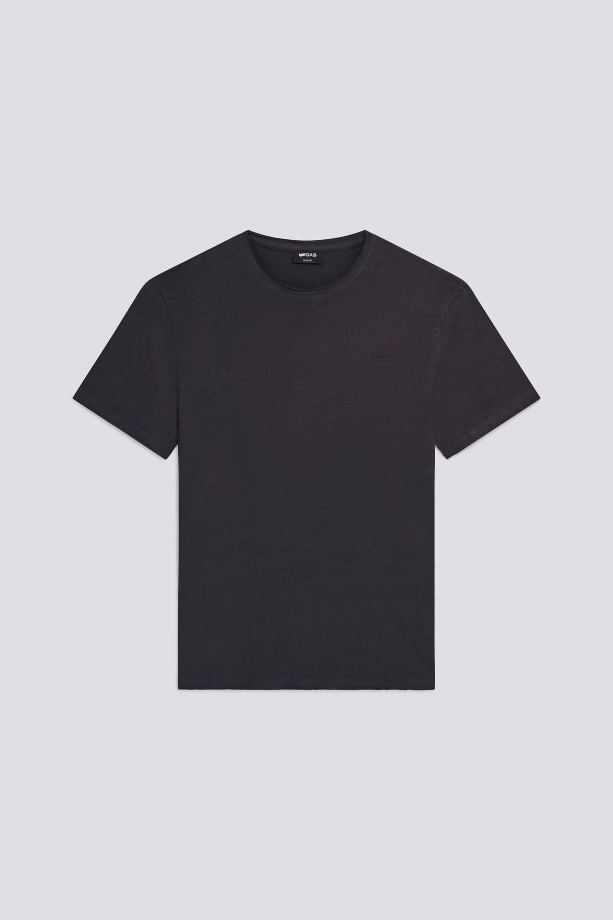 Men's slim fit short sleeve t-shirt. Made from 100% cotton slub jersey, it stands out for its slightly irregular texture and raw-cut edges, giving it an authentic look. The tone-on-tone embroidered logo on the chest makes it an essential to wear on its own or under lightweight shirts. Main Features: