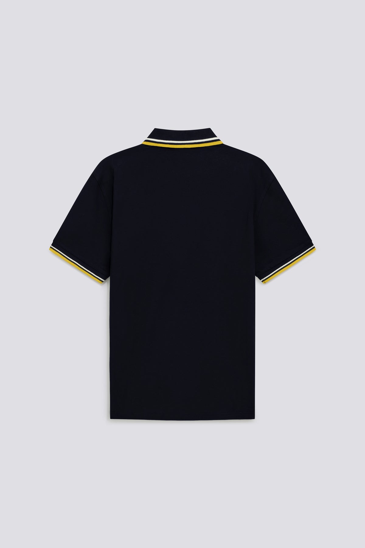 Rövid ujjú, slim fit férfi póló rugalmas pikéből. A kontrasztos csíkos gallér és mandzsetta a sportörökség esztétikáját idézi, míg az érdesített logónyomat a mellkason alapvetően grafikai hangsúlyt ad. Egy örökzöld darab a férfi ruhatárban.