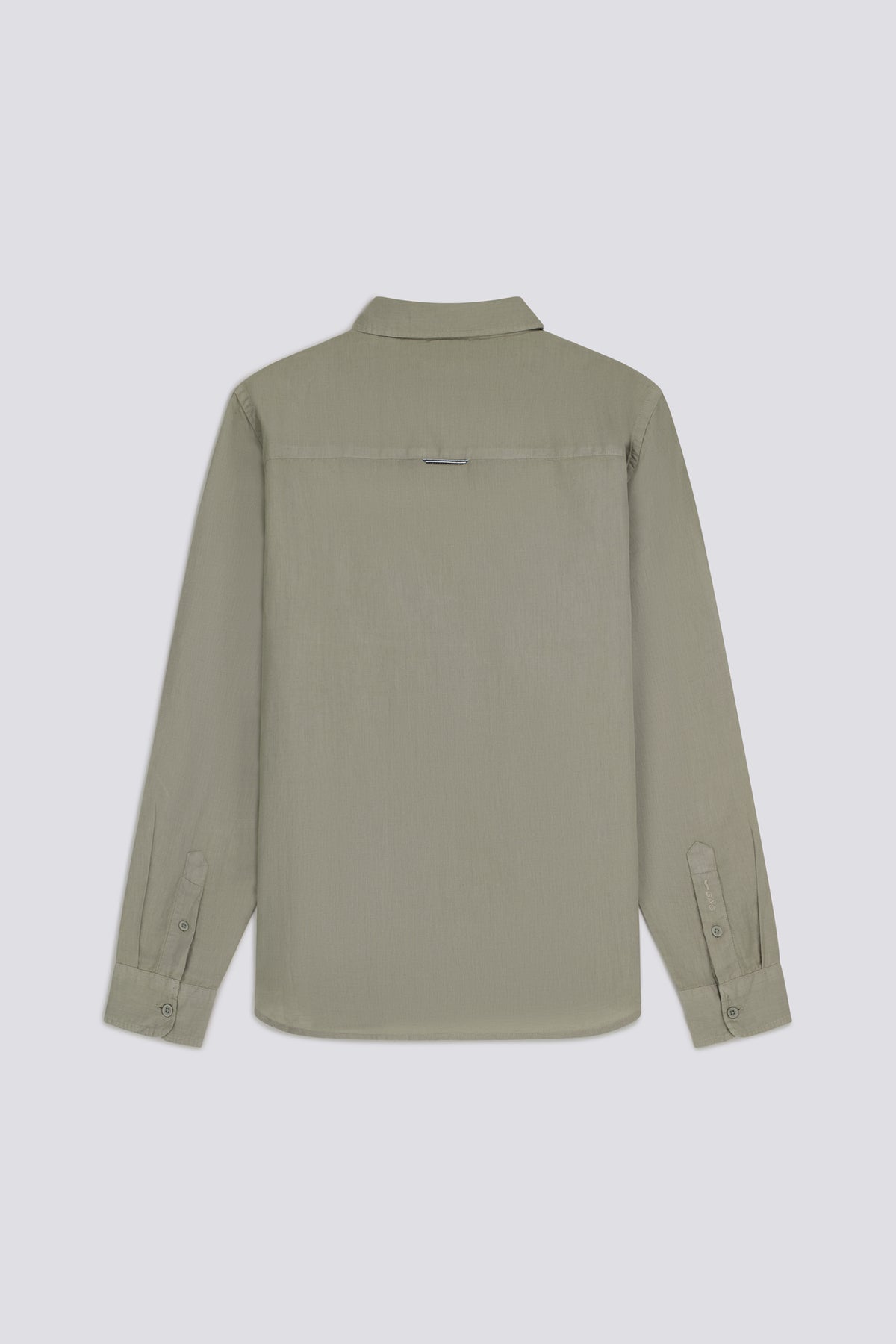 Regular fit, hosszú ujjú ing színezett vászon-pamutból. A modell letisztult kialakítású, részletgazdag kidolgozással, például hímzett logóval, chambray anyaggal a gallér belső pántján, csíkos szalaggal a gallér belsejében és a hátrészen lévő hurokként. Könnyű, sokoldalú darab, amelyet effortless, de átgondolt nyári megjelenéshez terveztek. Fő jellemzők: