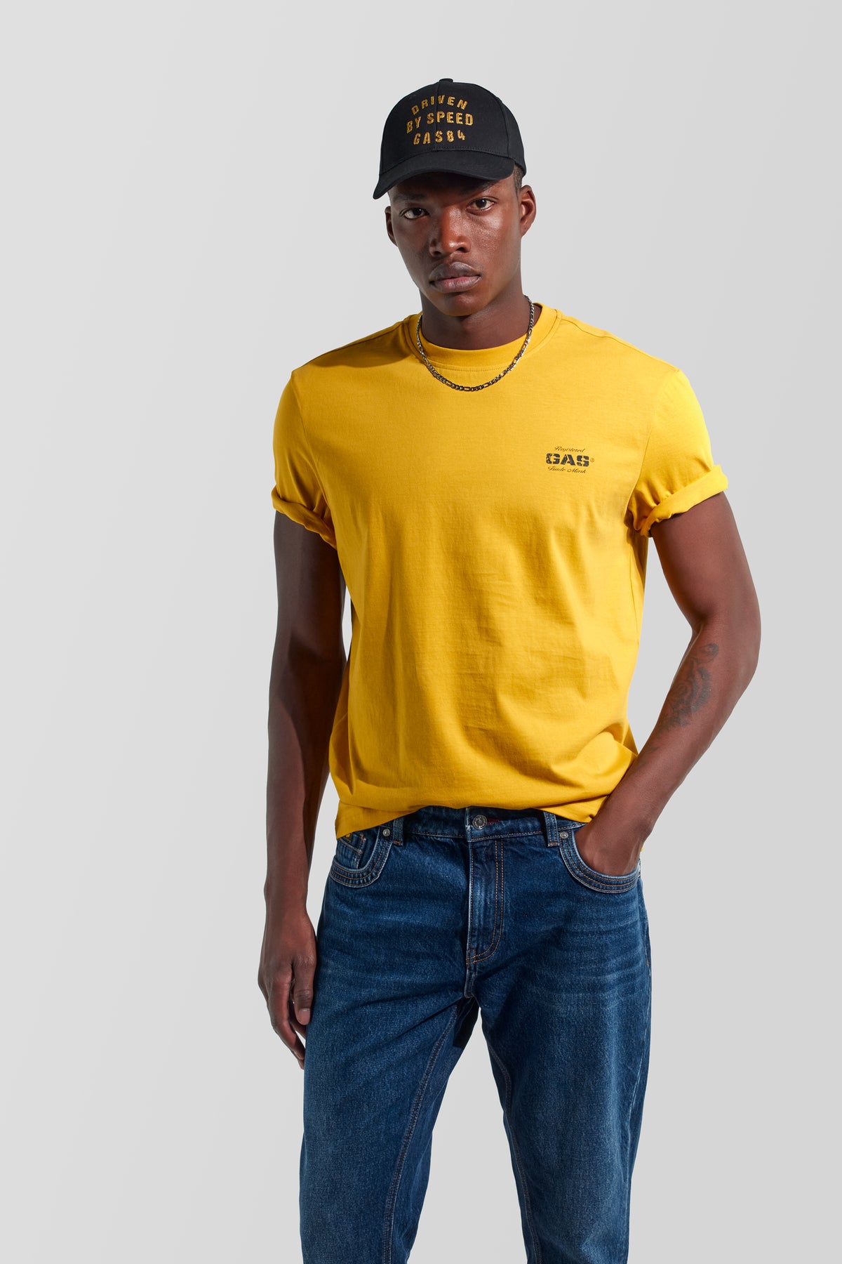 Rövid ujjú férfi póló könnyű pamut jerseyből, regular fit szabásban. A mellkason lévő vízbázisú, heritage stílusú logó a GAS archívumára utal, így a póló modern alapdarab, amely önmagában vagy rétegezve is viselhető.