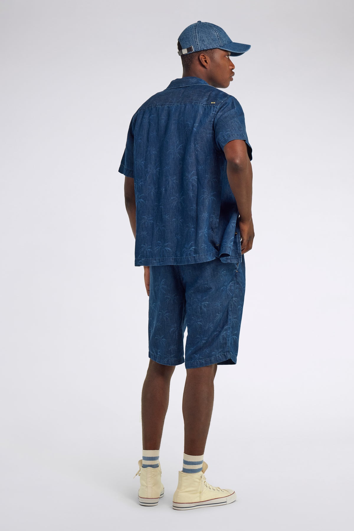 p>Shorts chino uomo dal fit tapered, realizzato in tessuto cotone-canapa indaco peso leggero 6.00 OZ. La stampa laser allover aggiunge carattere al capo, rendendolo un item estivo cool mai banale.