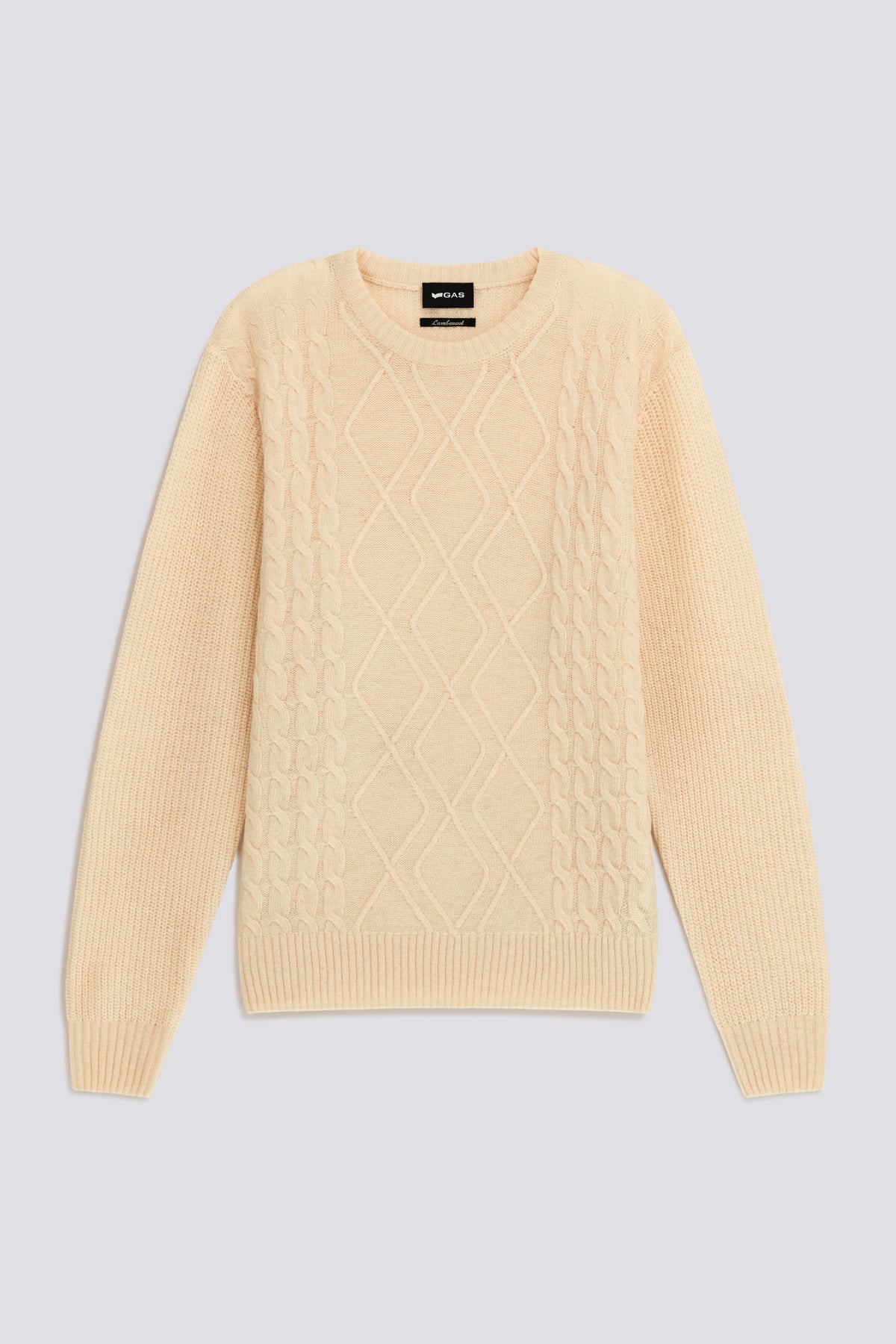 Maglia uomo girocollo dal fit regular in caldo filato lambswool finezza 5, caratterizzata da un classico motivo a trecce. Rifinita con placca logo in metallo sul retro dello scollo, è il capo perfetto per affrontare l’inverno con carattere.