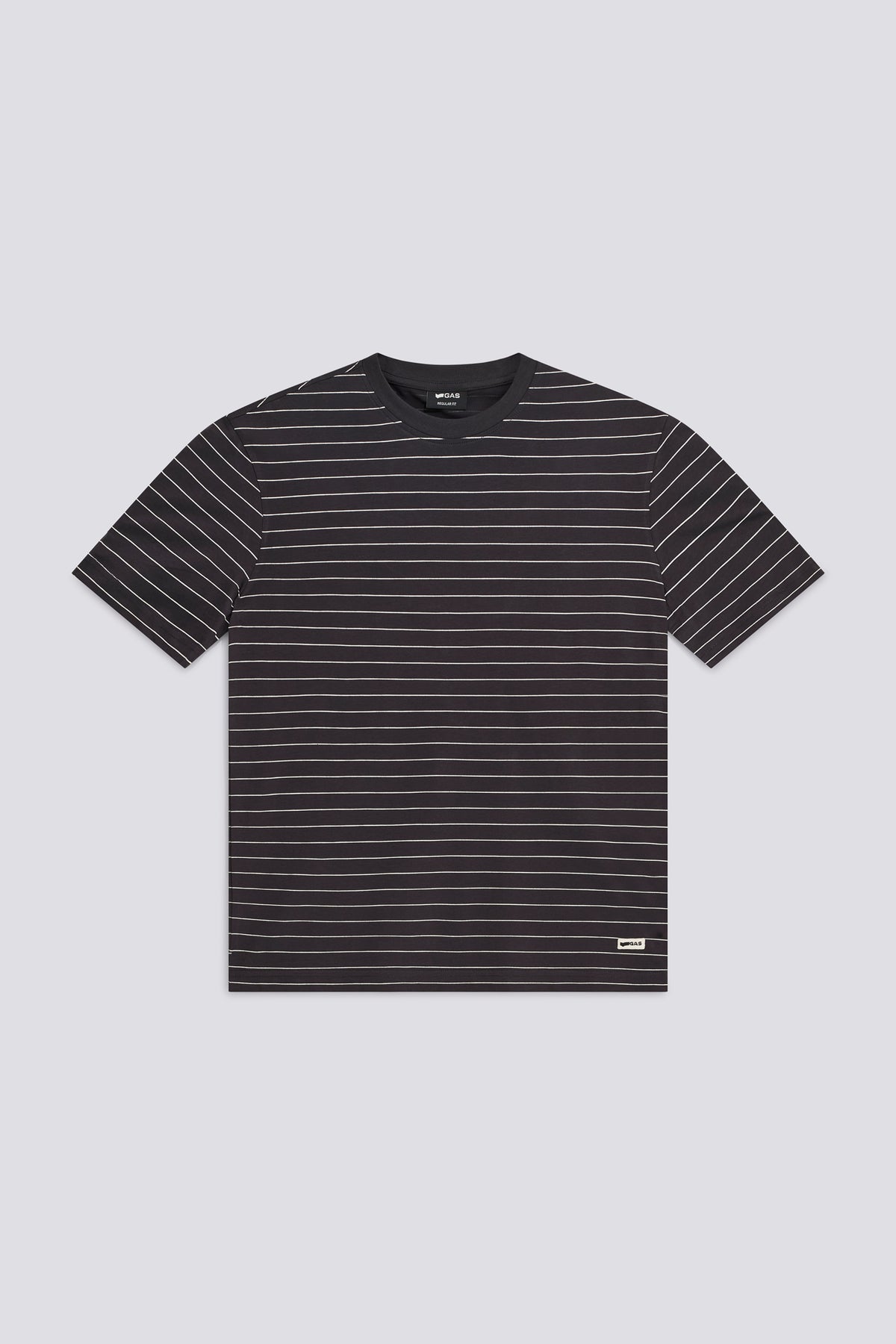 Men's short-sleeve regular-fit T-shirt in lightweight 100% cotton jersey. The all-over horizontal stripe pattern adds movement to the design, while the logo patch applied at the front hem provides a subtle, distinctive detail. A casual, contemporary style perfect for adding interest to everyday looks.