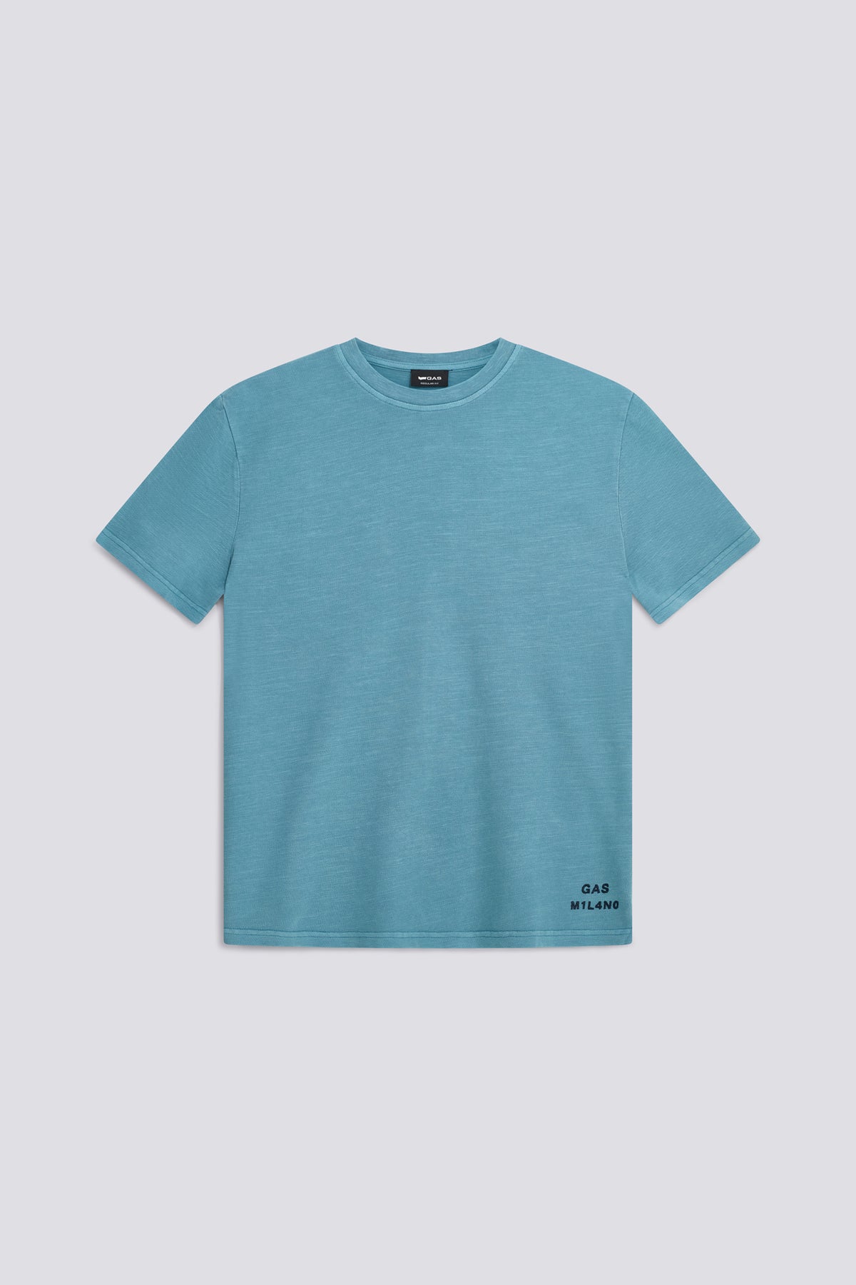 Men’s regular fit t-shirt in 100% slub pique cotton, featuring a slightly textured and authentic finish. Pigment dyeing gives the color a lived-in, rich effect, while the custom embroidered logo on the lower left front adds a contemporary essential touch.