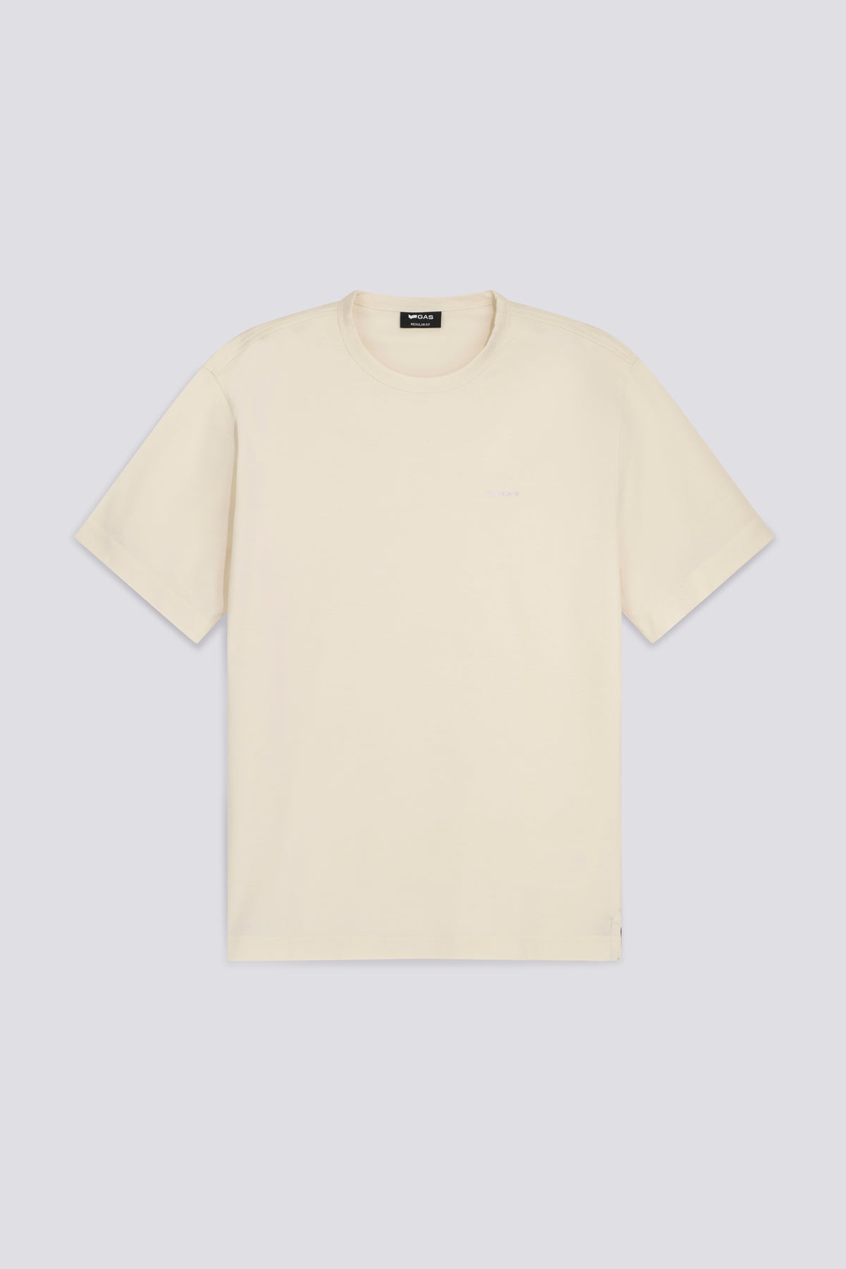 T-shirt uomo regular fit in fine jersey di cotone mercerizzato. La lavorazione mercerizzata dona al tessuto una mano più compatta e luminosa, elevando l’aspetto essenziale del capo. Personalizzata con ricamo logo sul petto e rifinita da tape rigato all’interno dello scollo dietro, è un essential evoluto, curato nei dettagli.