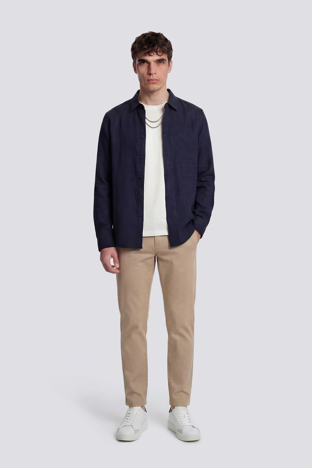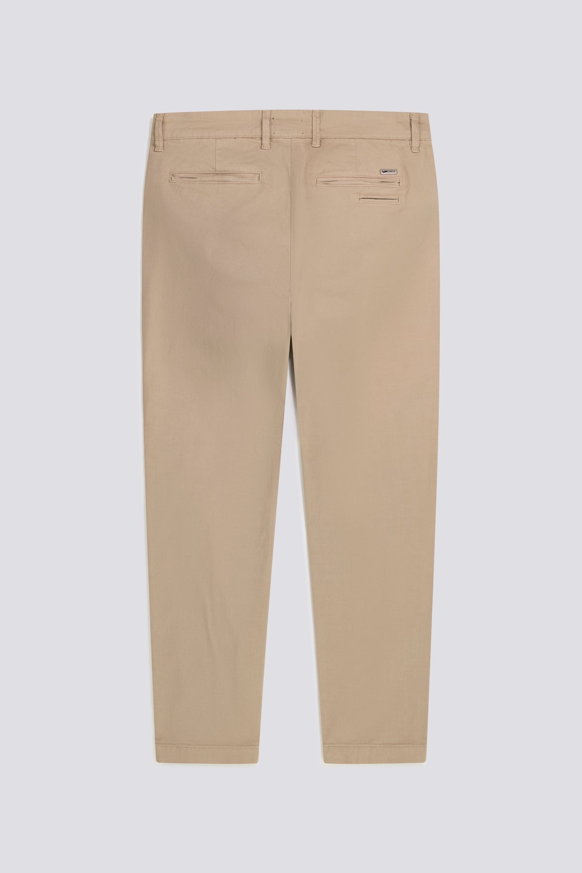 Pantaloni chino uomo slim fit. Realizzati in twill di cotone stretch tinto in capo, unisce una linea pulita a una vestibilità asciutta e confortevole. I dettagli interni in chambray e il piping rigato sull’interno cintura completano il design mentre la placca logo in metallo sopra la tasca posteriore destra firma il capo. Un chino essenziale e versatile, pensato per un utilizzo quotidiano ma anche per look più formali.