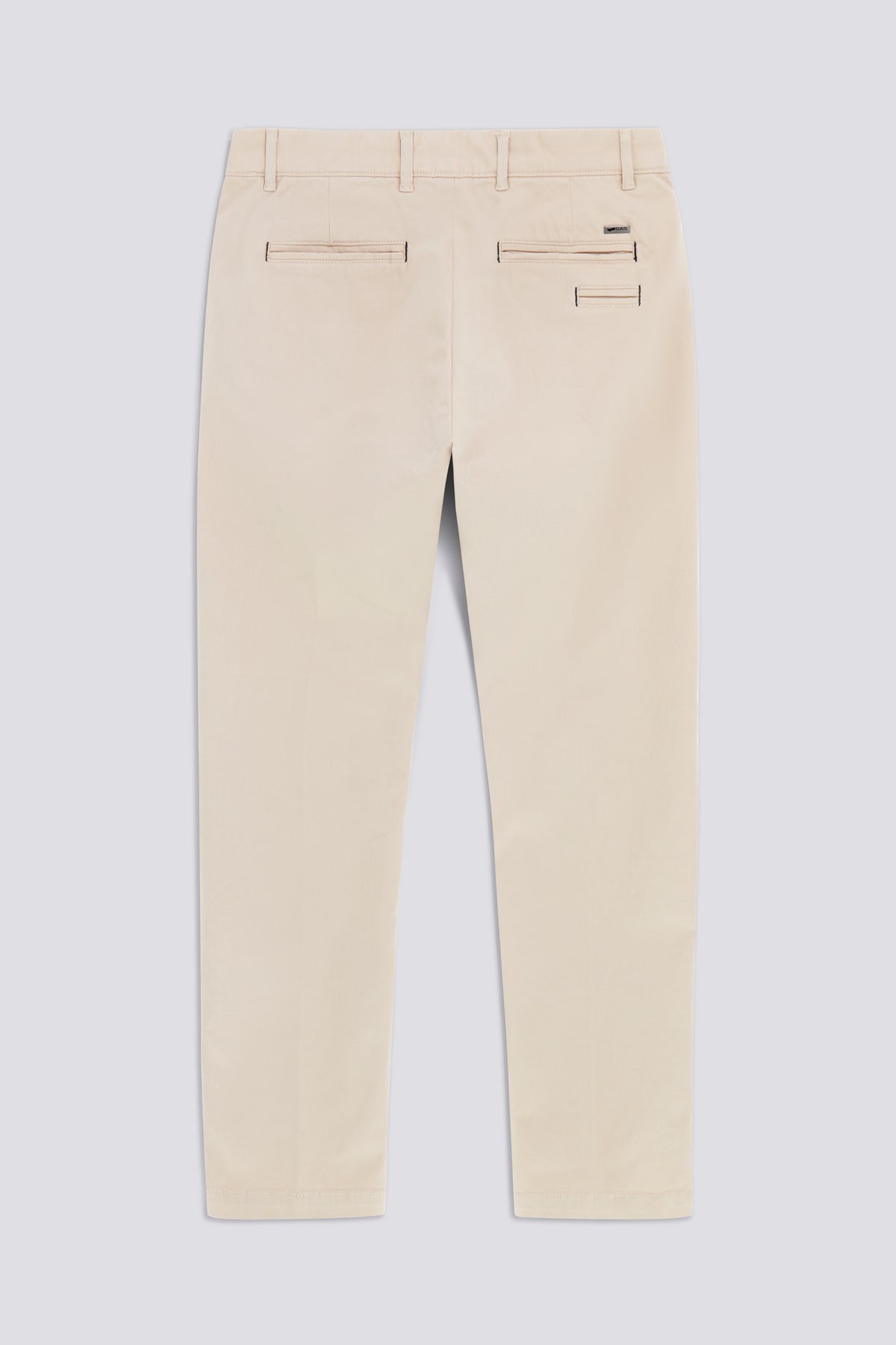 Pantalone uomo taglio chino, slim fit, in gabardina di cotone stretch. Un classico rivisitato in chiave attuale: i dettagli interni aggiungono personalità, mentre il fit asciutto e il tessuto stretch assicurano comfort e versatilità in ogni look.